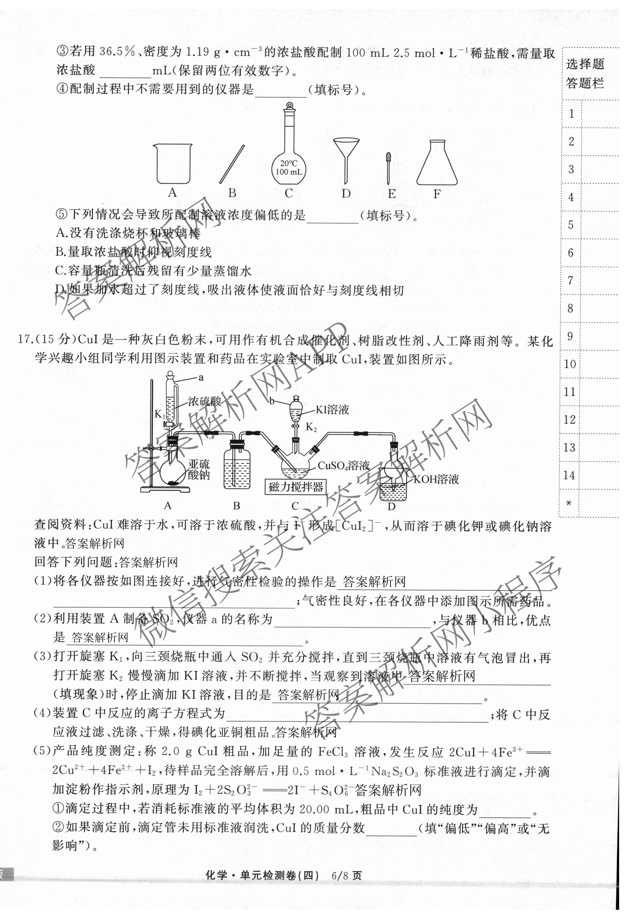 天舟高考衡中同卷·2025-2026学年度高三复习单元检测卷(四)4化学(J专版)试题,目前分科卷答案网已经汇总了天舟高考衡中同卷·2025-2026学年度高三复习单元检测卷(四)4化学(J专版)试题的各科答案和试卷,获取更多衡中同卷答案解析,请在关注本站。