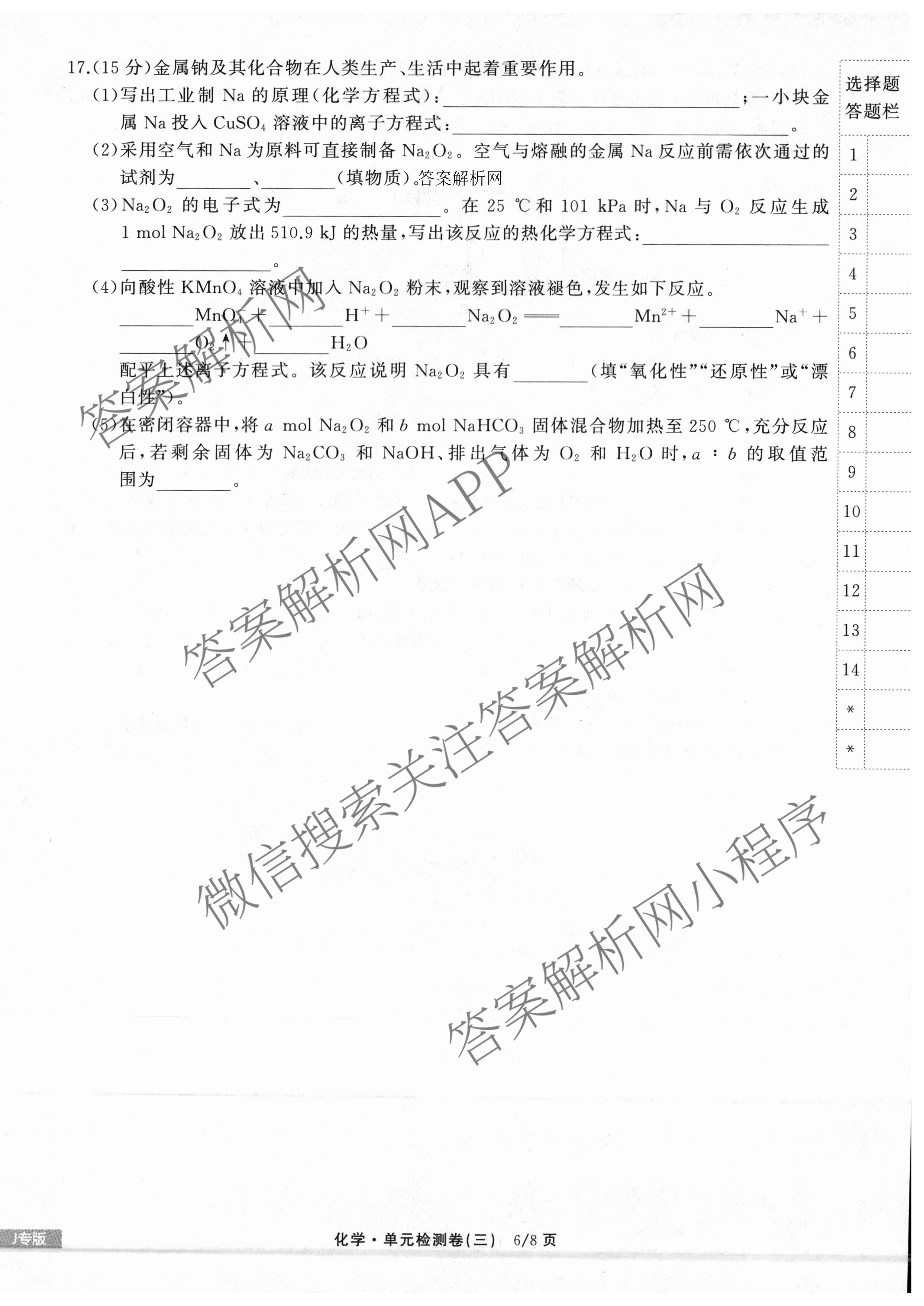天舟高考衡中同卷·2025-2026学年度高三复习单元检测卷(三)3化学(J专版)试题,目前分科卷答案网已经汇总了天舟高考衡中同卷·2025-2026学年度高三复习单元检测卷(三)3化学(J专版)试题的各科答案和试卷,获取更多衡中同卷答案解析,请在关注本站。