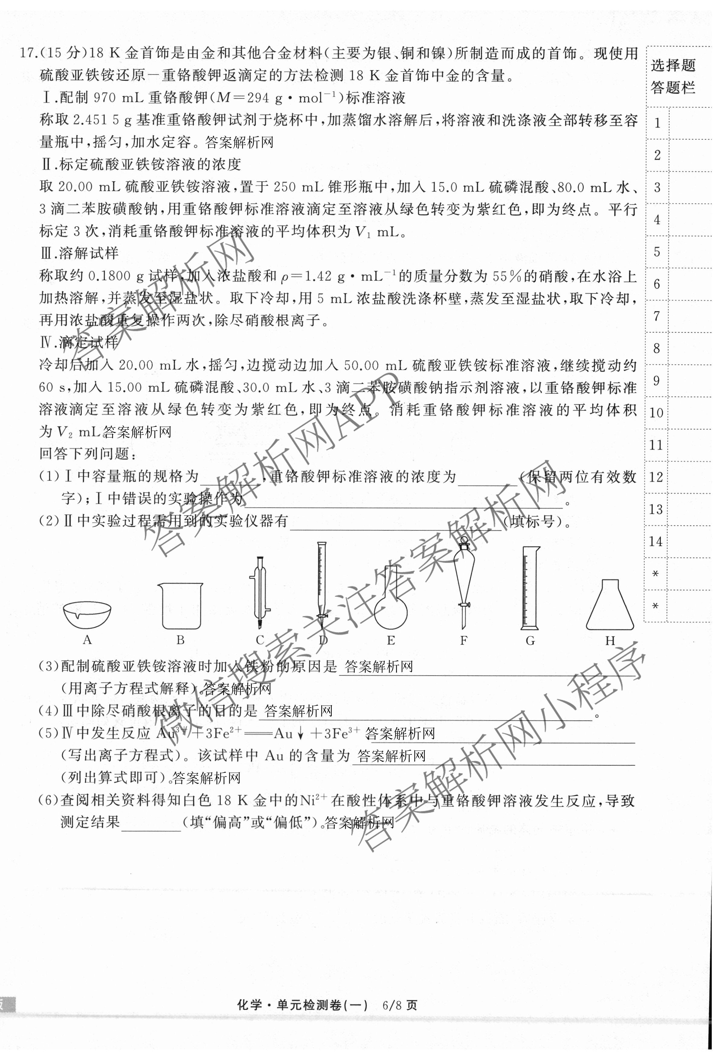 天舟高考衡中同卷·2025-2026学年度高三复习单元检测卷(一)1化学(J专版)试题,目前分科卷答案网已经汇总了天舟高考衡中同卷·2025-2026学年度高三复习单元检测卷(一)1化学(J专版)试题的各科答案和试卷,获取更多衡中同卷答案解析,请在关注本站。