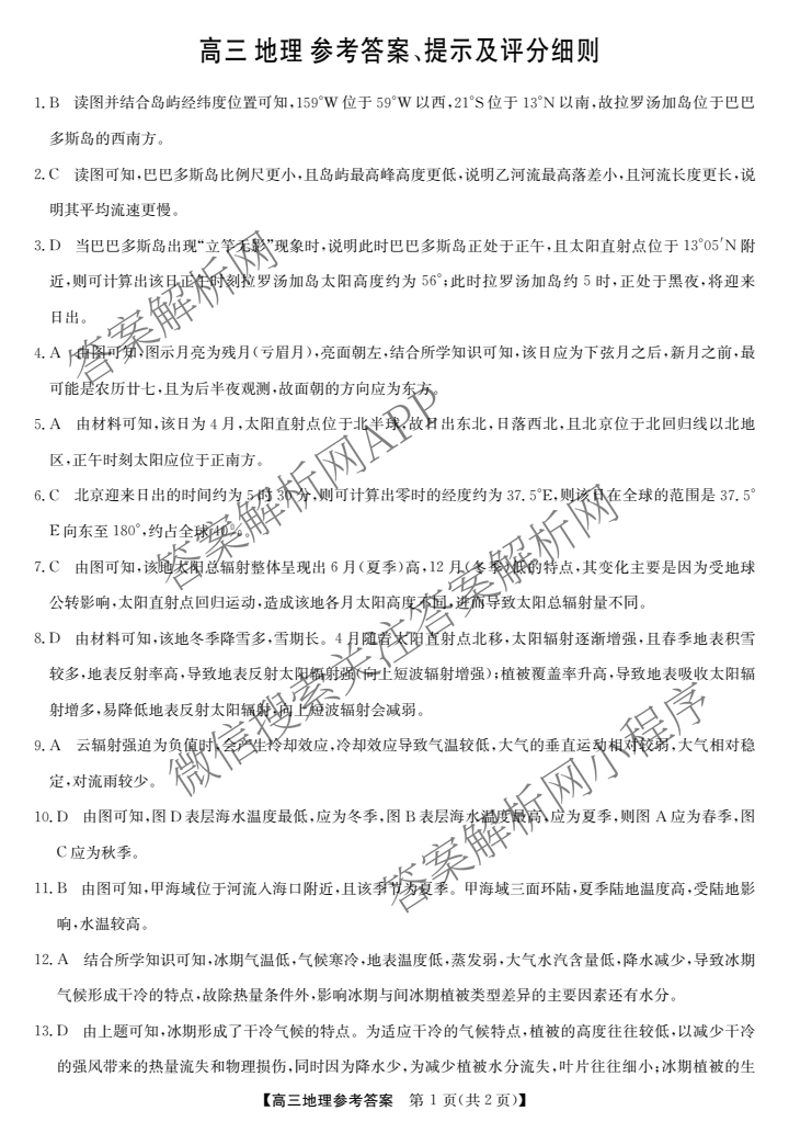 - 2025年"(江南十校)"新[高三]第一次综合素质检测地理(B)答案
