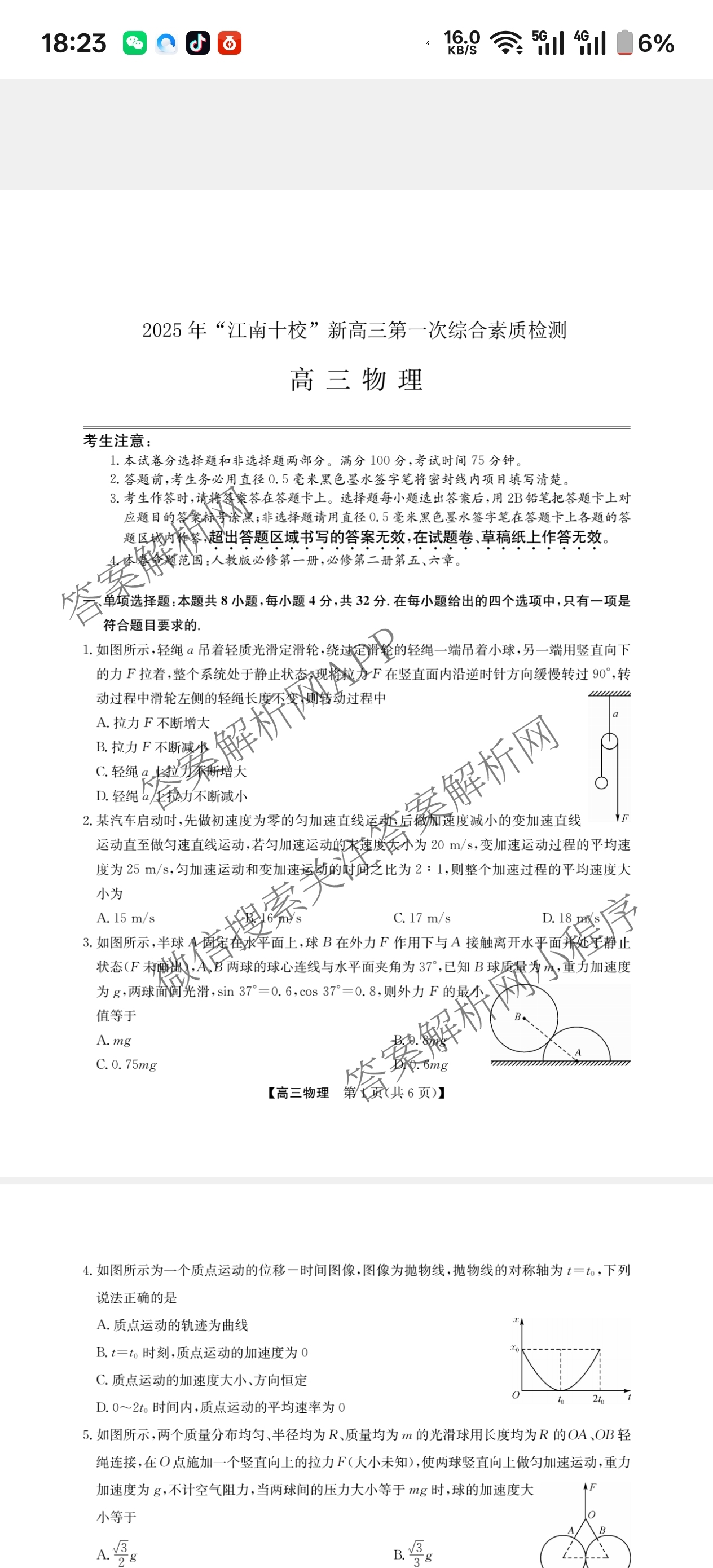 2025年"江南十校"新高三第一次综合素质检测物理试题,目前分科卷答案网已经汇总了2025年"江南十校"新高三第一次综合素质检测物理试题的各科答案和试卷,获取更多江南十校答案解析,请在关注本站。