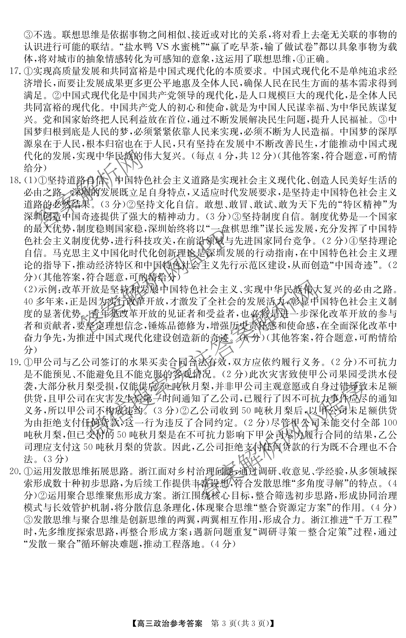 - 2025年"(江南十校)"新(高三)第一次综合素质检测政治答案