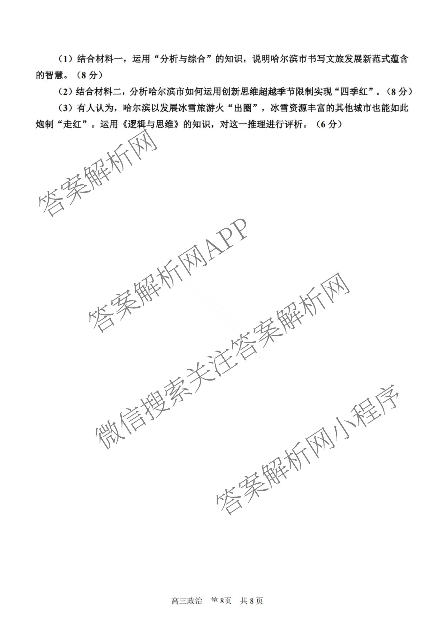 黑龙江省哈三中2025-2026学年度上学期高三期中考试政治试题,目前分科卷答案网已经汇总了黑龙江省哈三中2025-2026学年度上学期高三期中考试政治试题的各科答案和试卷,获取更多地方模拟答案解析,请在关注本站。