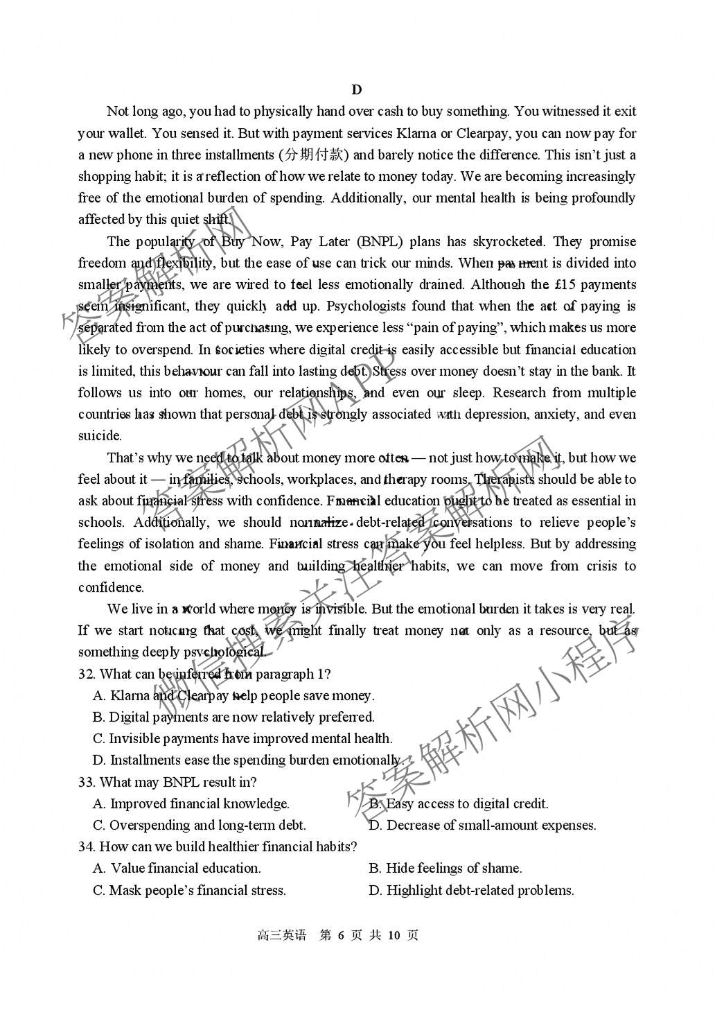 黑龙江省哈三中2025-2026学年度上学期高三期中考试英语试题,目前分科卷答案网已经汇总了黑龙江省哈三中2025-2026学年度上学期高三期中考试英语试题的各科答案和试卷,获取更多地方模拟答案解析,请在关注本站。