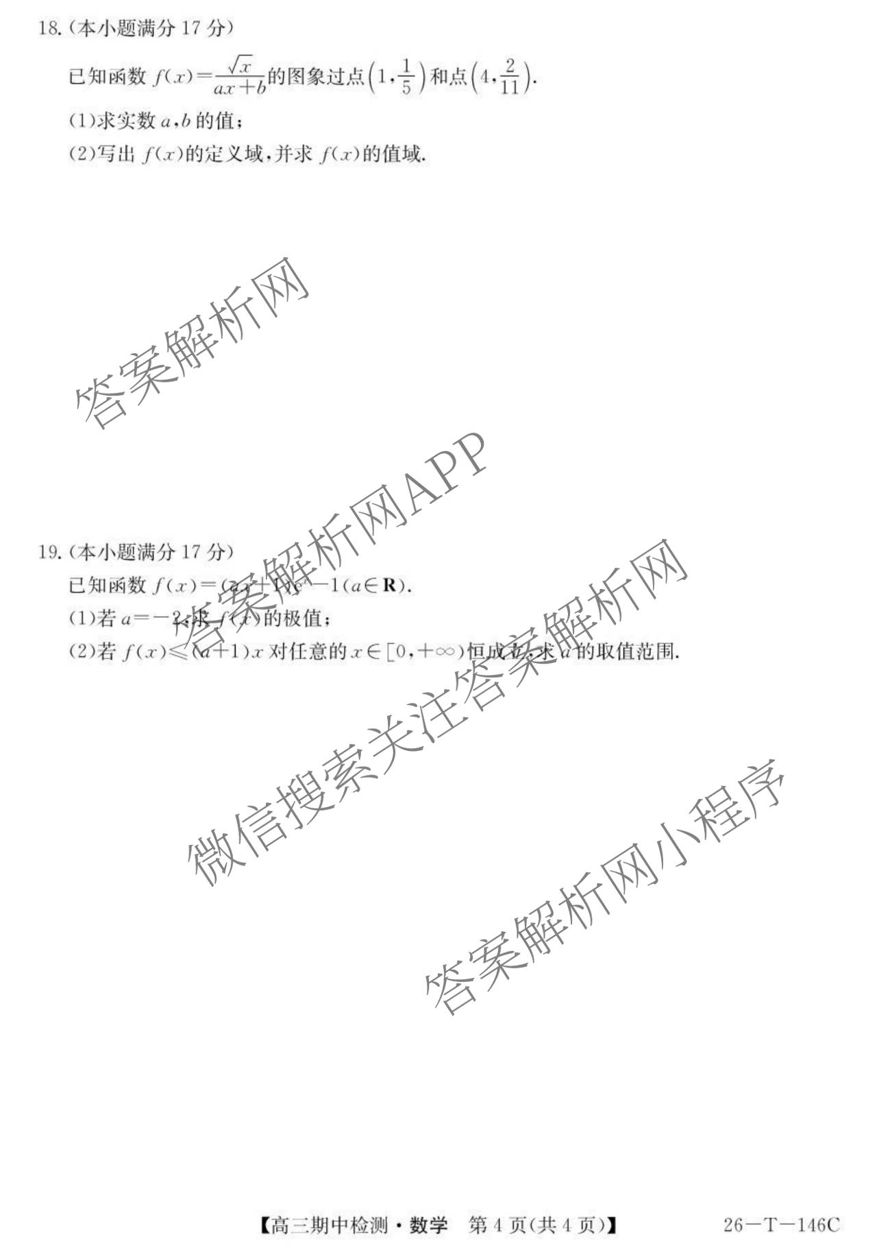 青海省大通县朔山中学2025-2026学年第一学期高三期中检测(26-T-146C)数学试题,目前分科卷答案网已经汇总了青海省大通县朔山中学2025-2026学年第一学期高三期中检测(26-T-146C)数学试题的各科答案和试卷,获取更多地方模拟答案解析,请在关注本站。