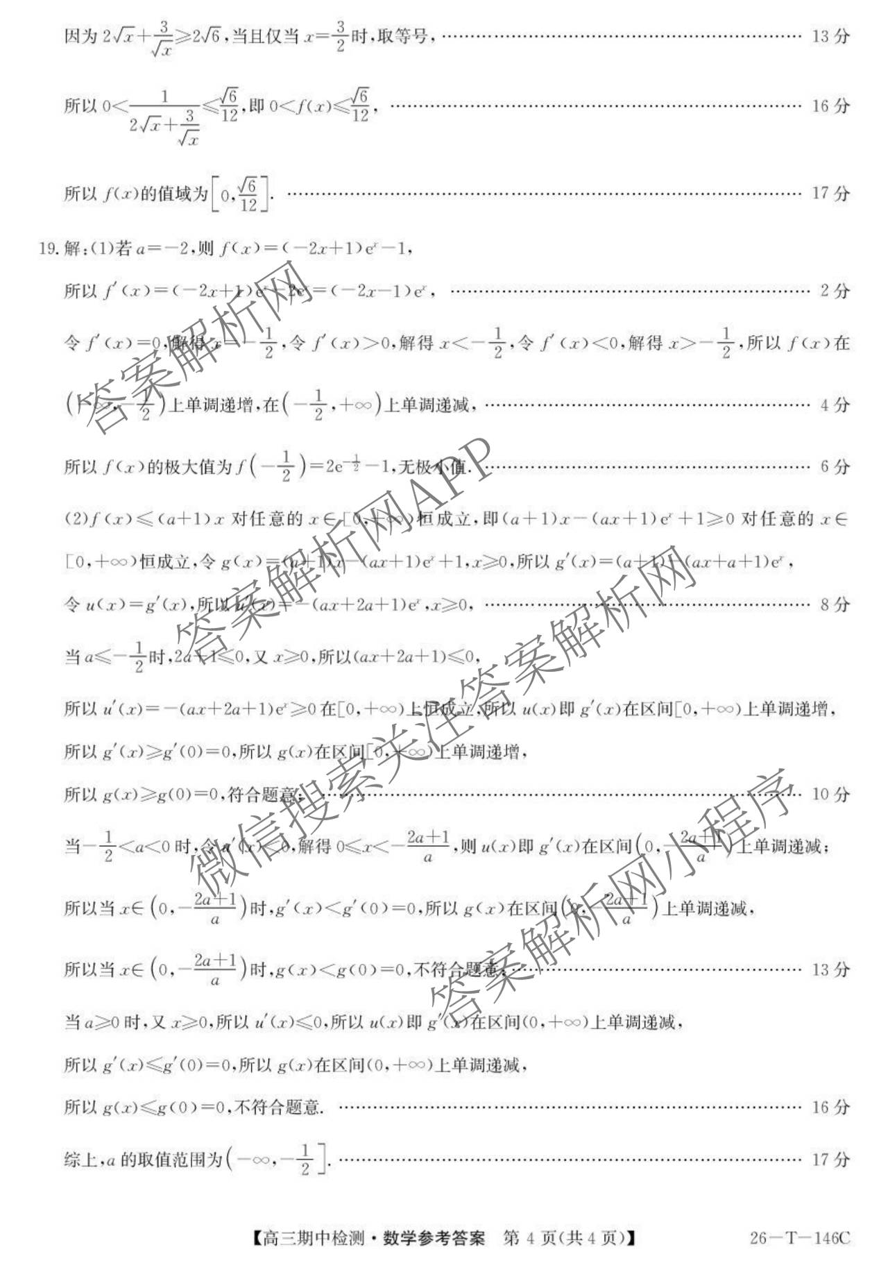 青海省大通县朔山中学2025-2026学年第一学期高三期中检测(26-T-146C)数学答案,目前分科卷答案网已经汇总了青海省大通县朔山中学2025-2026学年第一学期高三期中检测(26-T-146C)数学答案的各科答案和试卷,获取更多地方模拟答案解析,请在关注本站。