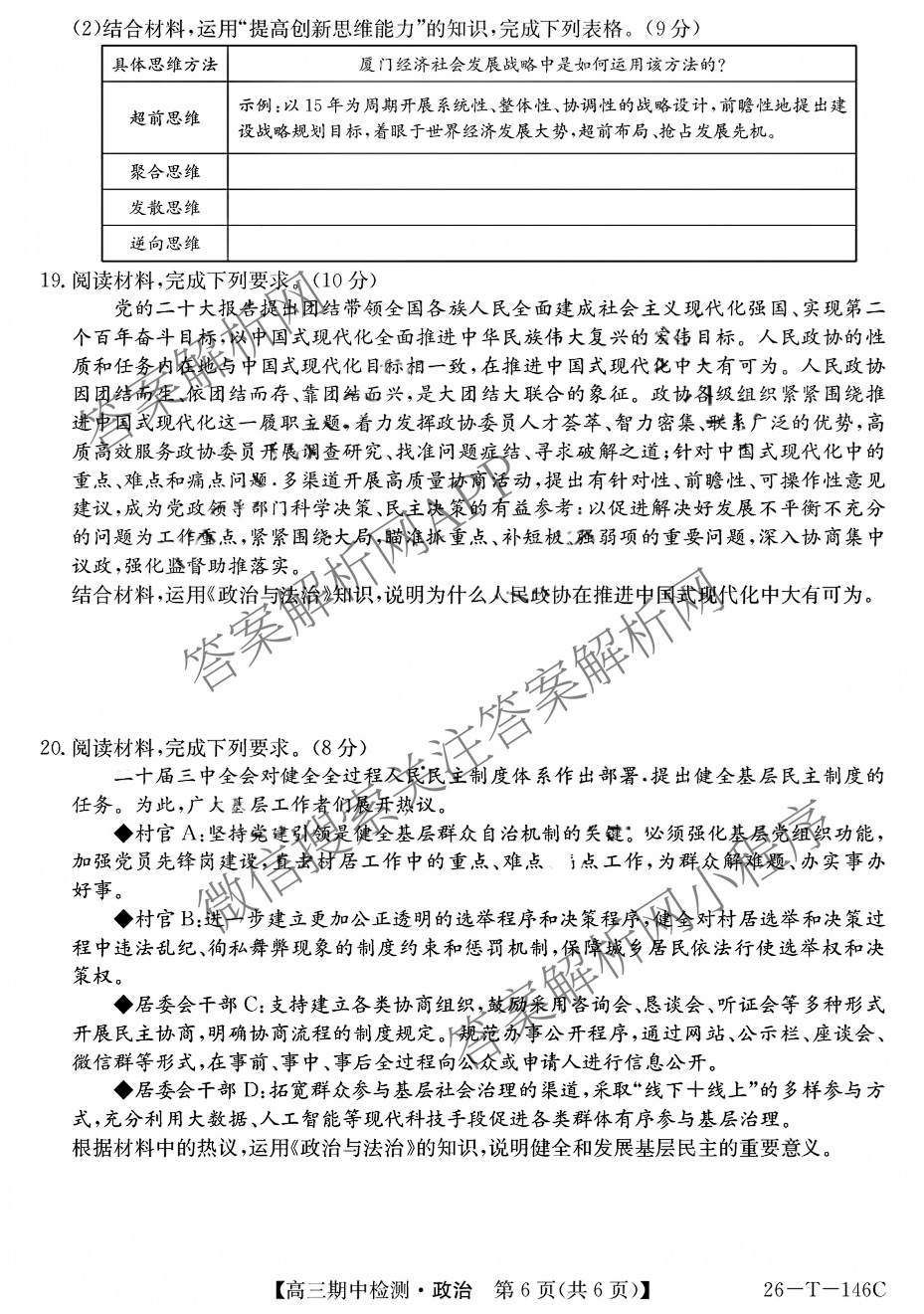 青海省大通县朔山中学2025-2026学年第一学期高三期中检测(26-T-146C)政治试题,目前分科卷答案网已经汇总了青海省大通县朔山中学2025-2026学年第一学期高三期中检测(26-T-146C)政治试题的各科答案和试卷,获取更多地方模拟答案解析,请在关注本站。