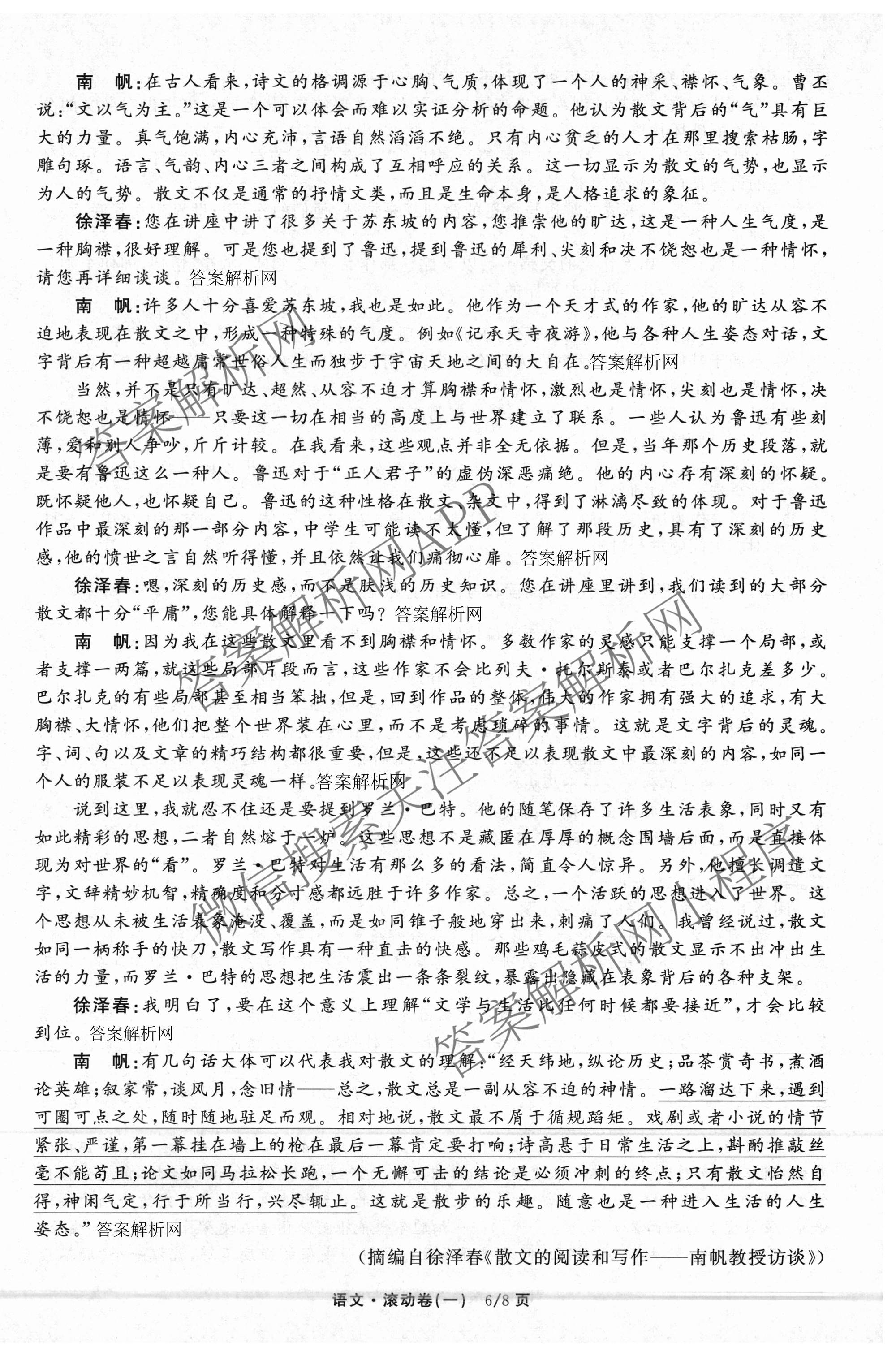 - 2025-2026[高三][衡中同卷]·学年度复习滚动卷(一)1语文答案