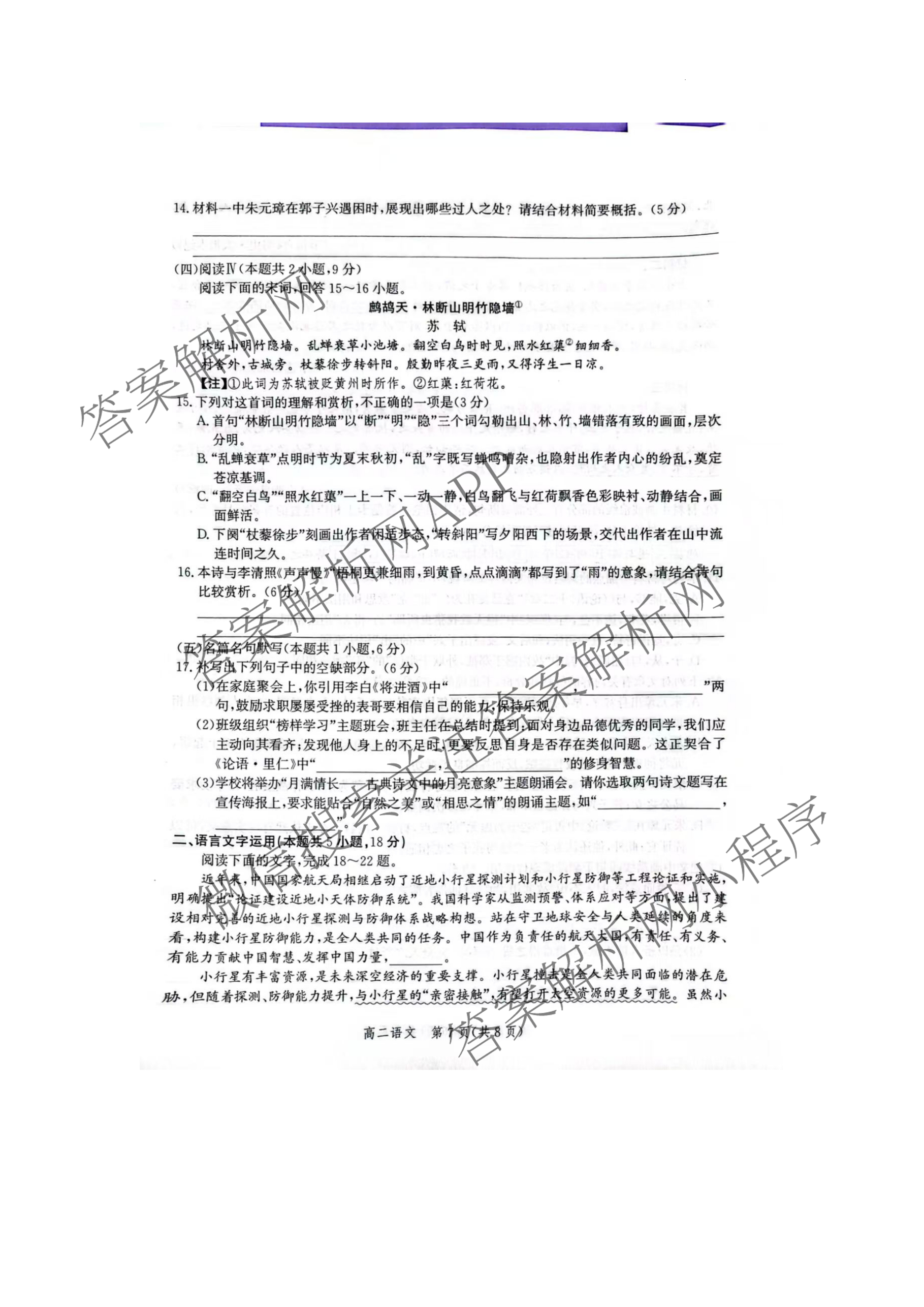 高二年级2025-2026学年第一学期期中考试语文试题,目前分科卷答案网已经汇总了高二年级2025-2026学年第一学期期中考试语文试题的各科答案和试卷,获取更多神州智达答案解析,请在关注本站。