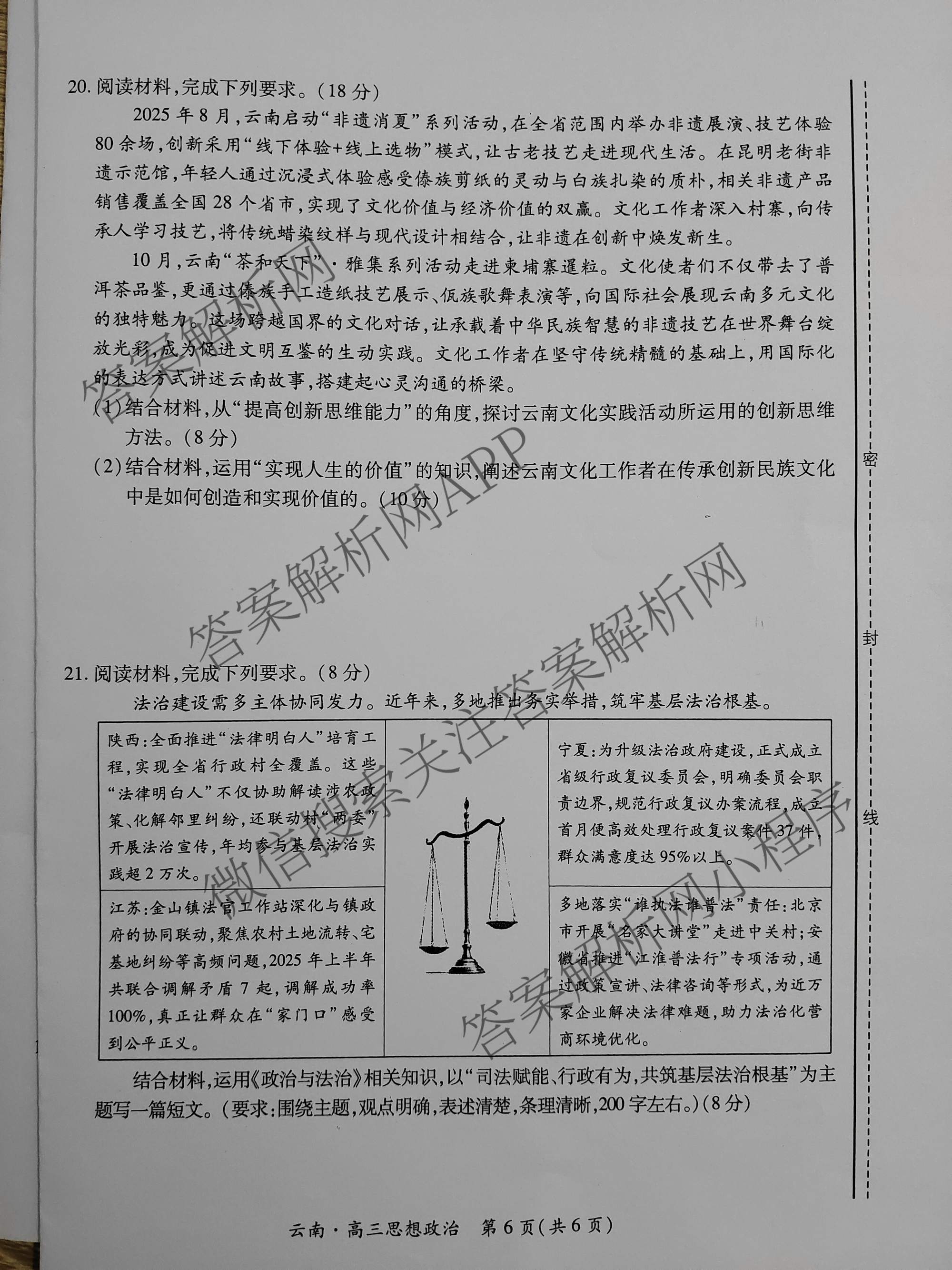 云南民族大学附属高级中学2026届高三联考卷(三)政治试题,目前分科卷答案网已经汇总了云南民族大学附属高级中学2026届高三联考卷(三)政治试题的各科答案和试卷,获取更多地方模拟答案解析,请在关注本站。