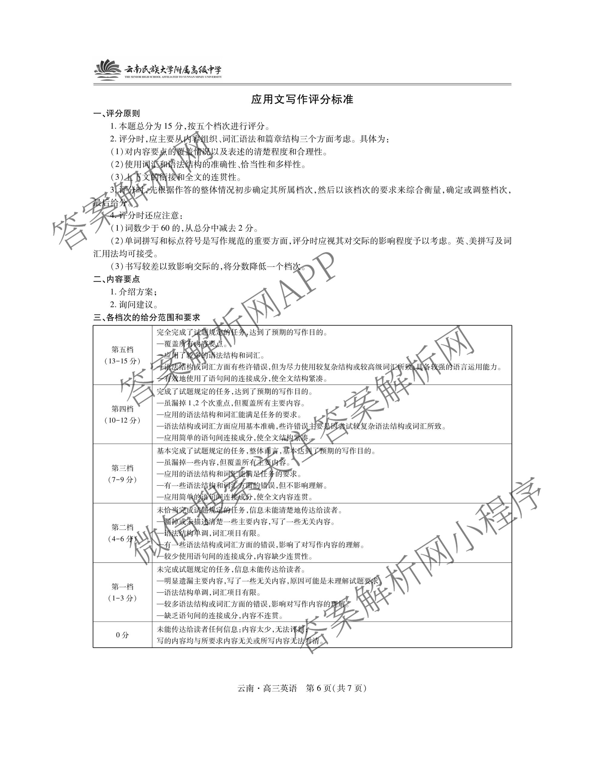 - 2026届云南民族大学附属高级中学[高三]联考卷(三)英语答案