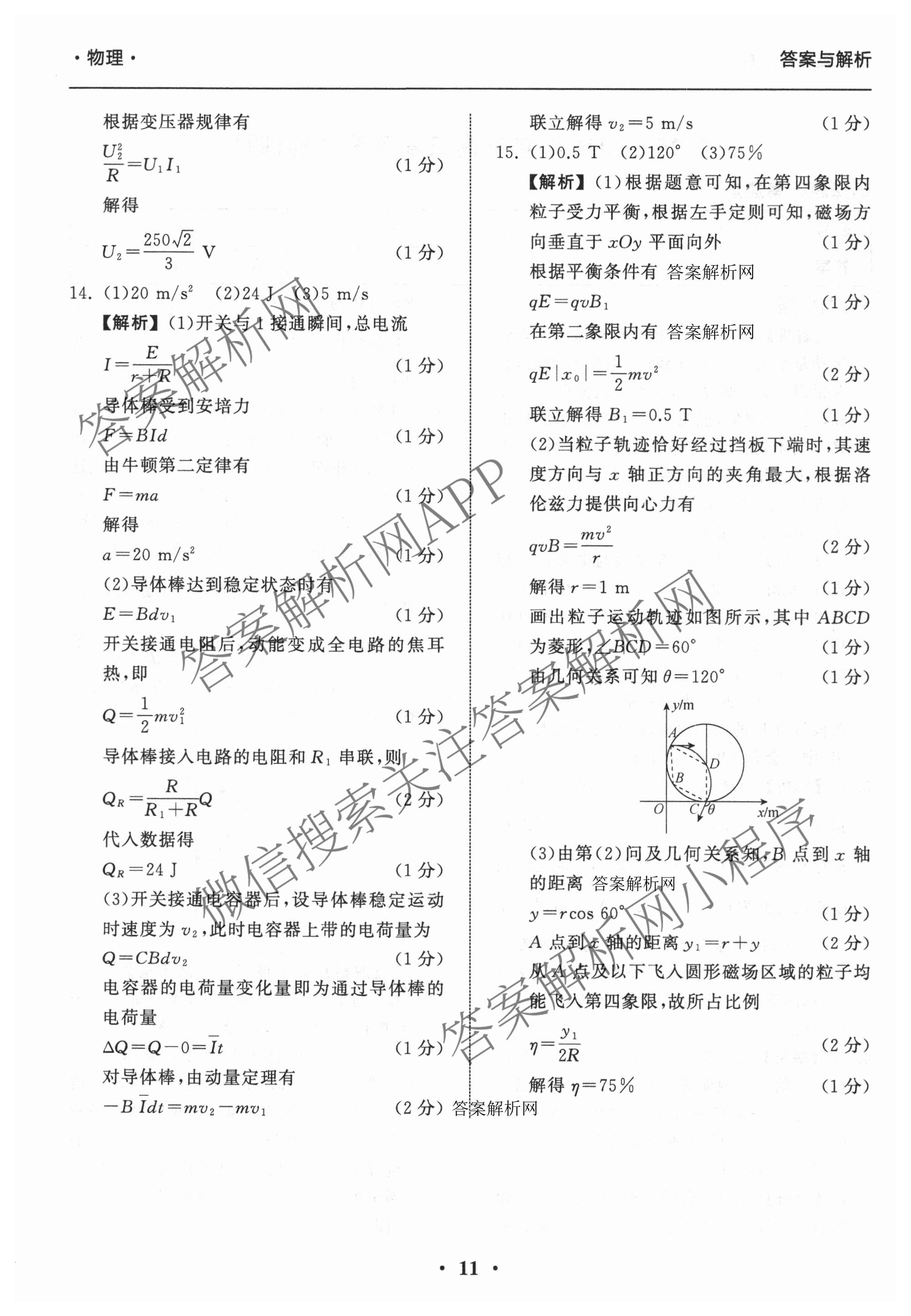 - (衡中同卷)2025-2026学年度(高三)复习滚动卷(三)3物理(JY)答案
