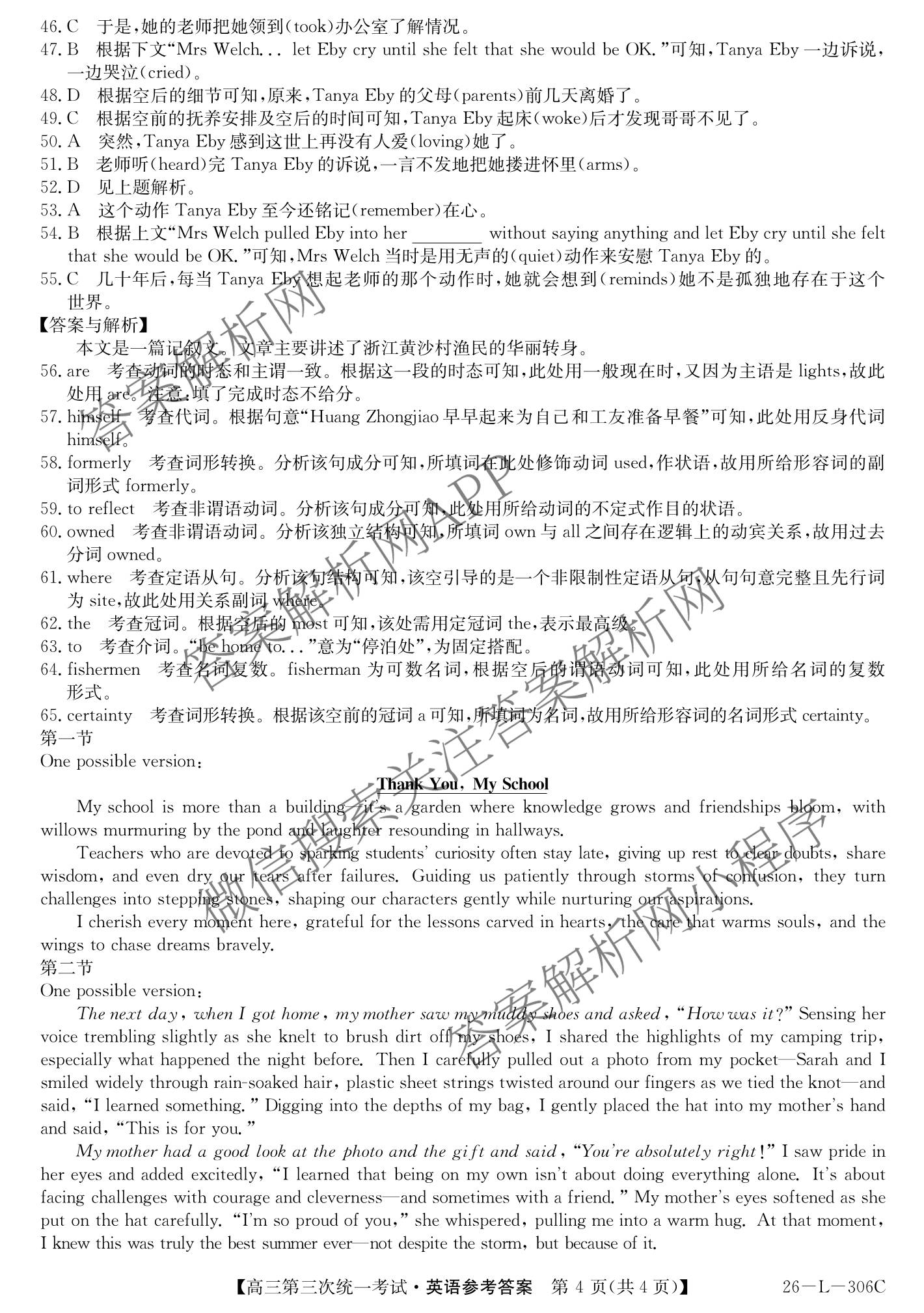 - (高三)黑龙江省齐市普高联谊校第三次统一考试(26-L-306C)英语答案