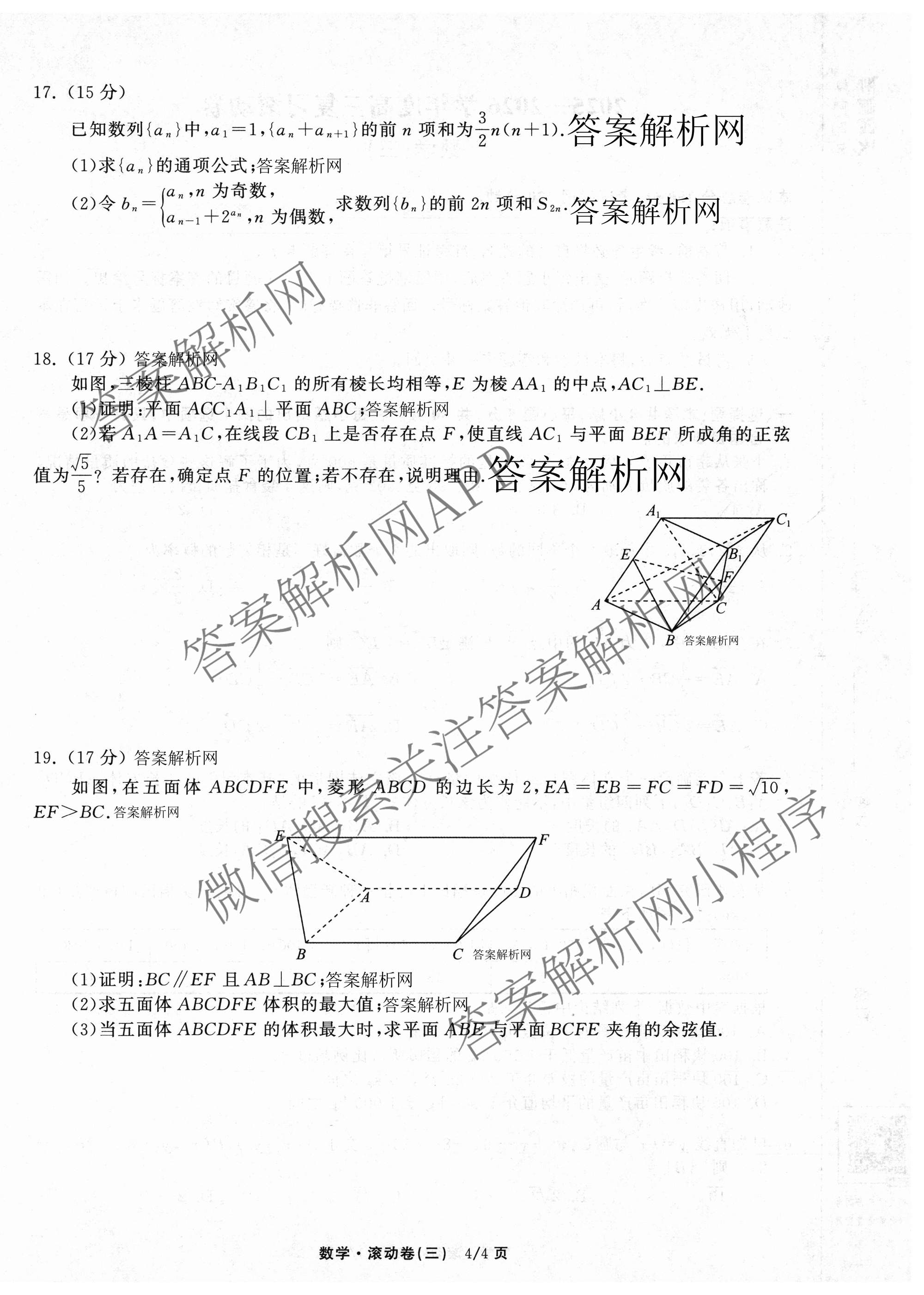 - 高三[衡中同卷]2025~2026学年度复习滚动卷(三)3数学(B)试题