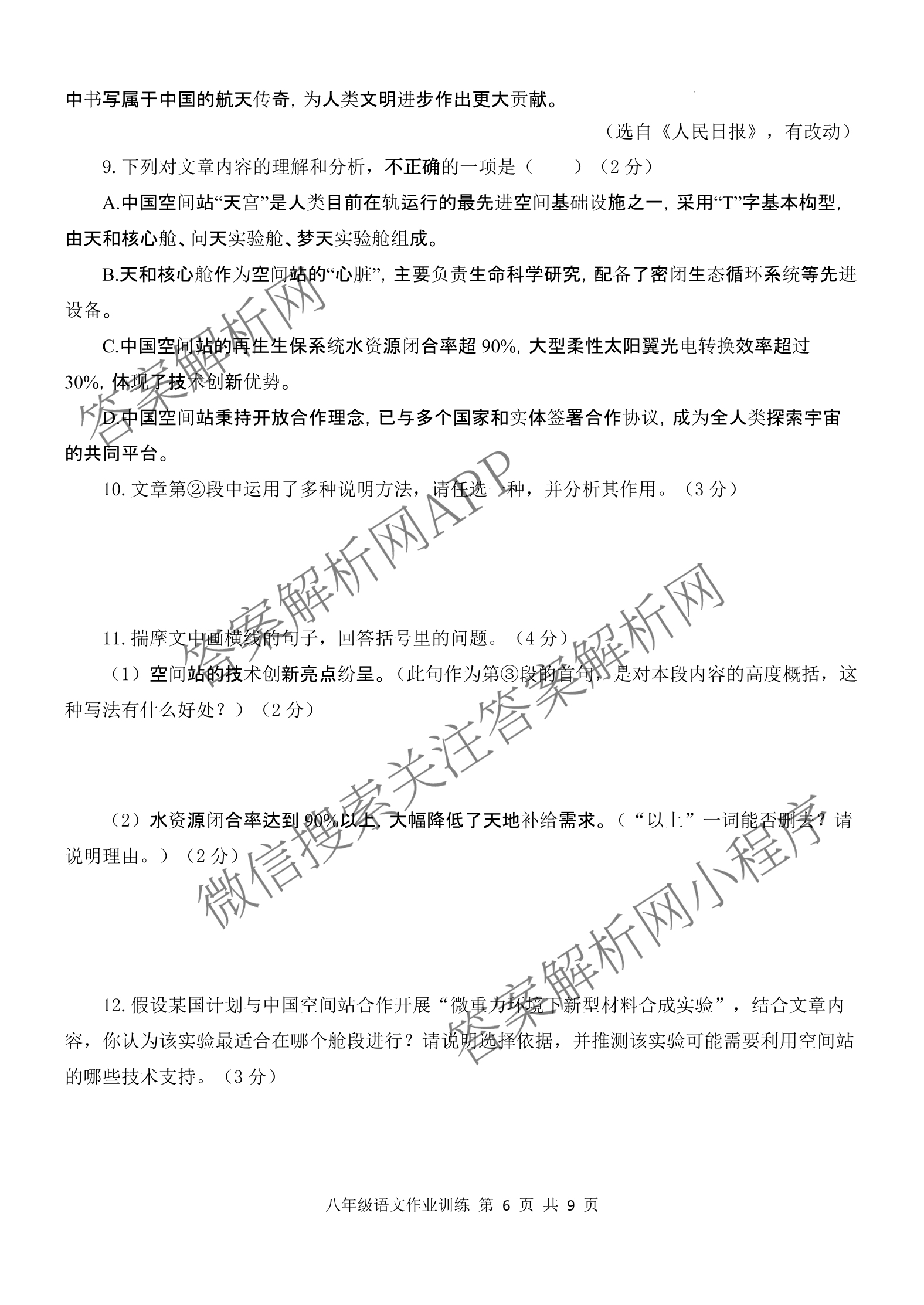 - (八年级)河南省南阳市2025年秋期阶段性作业训练2025.12语文答案