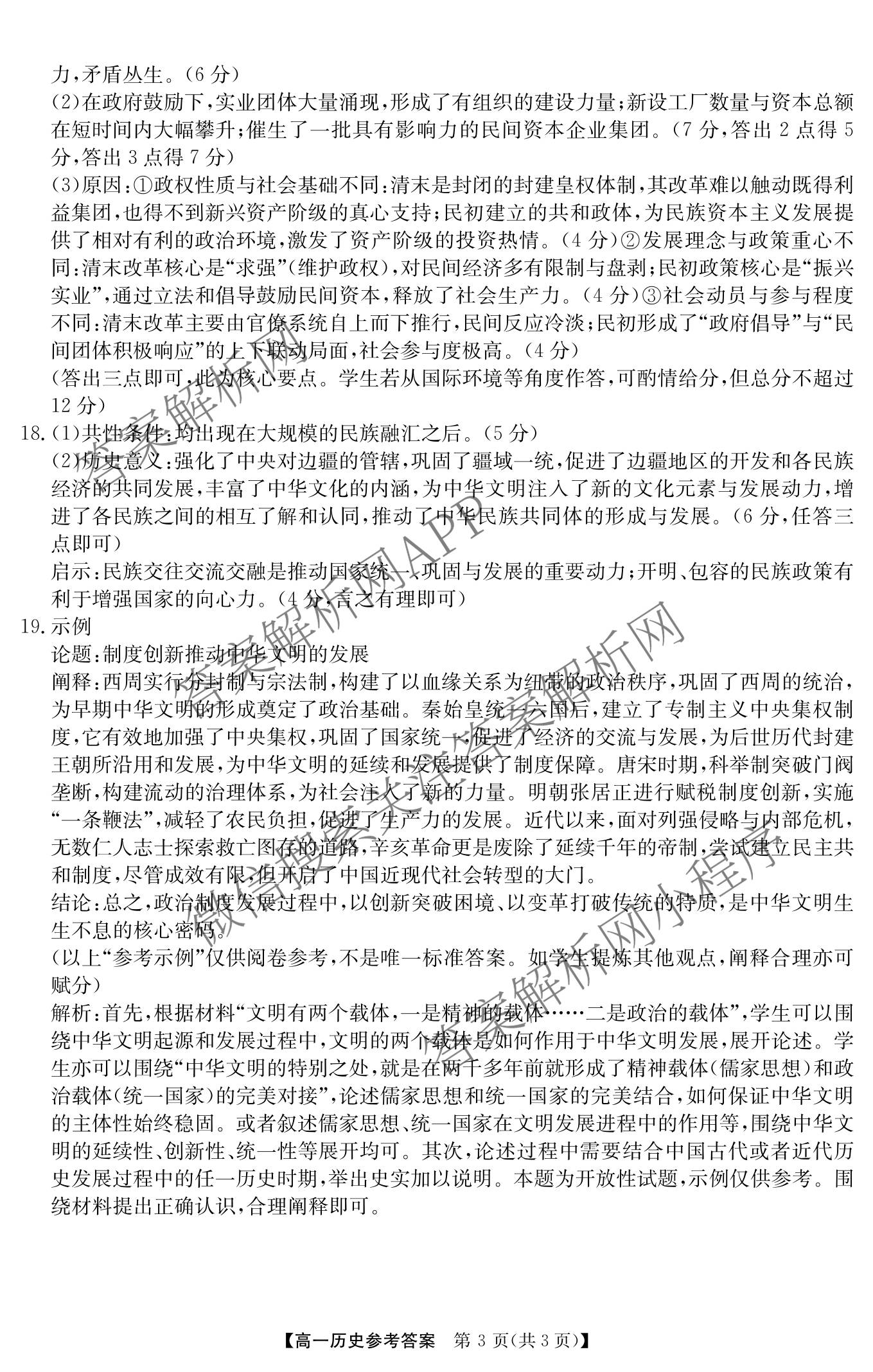 - [高一]2025年"江南十校"12月份分科诊断联考历史(A)答案