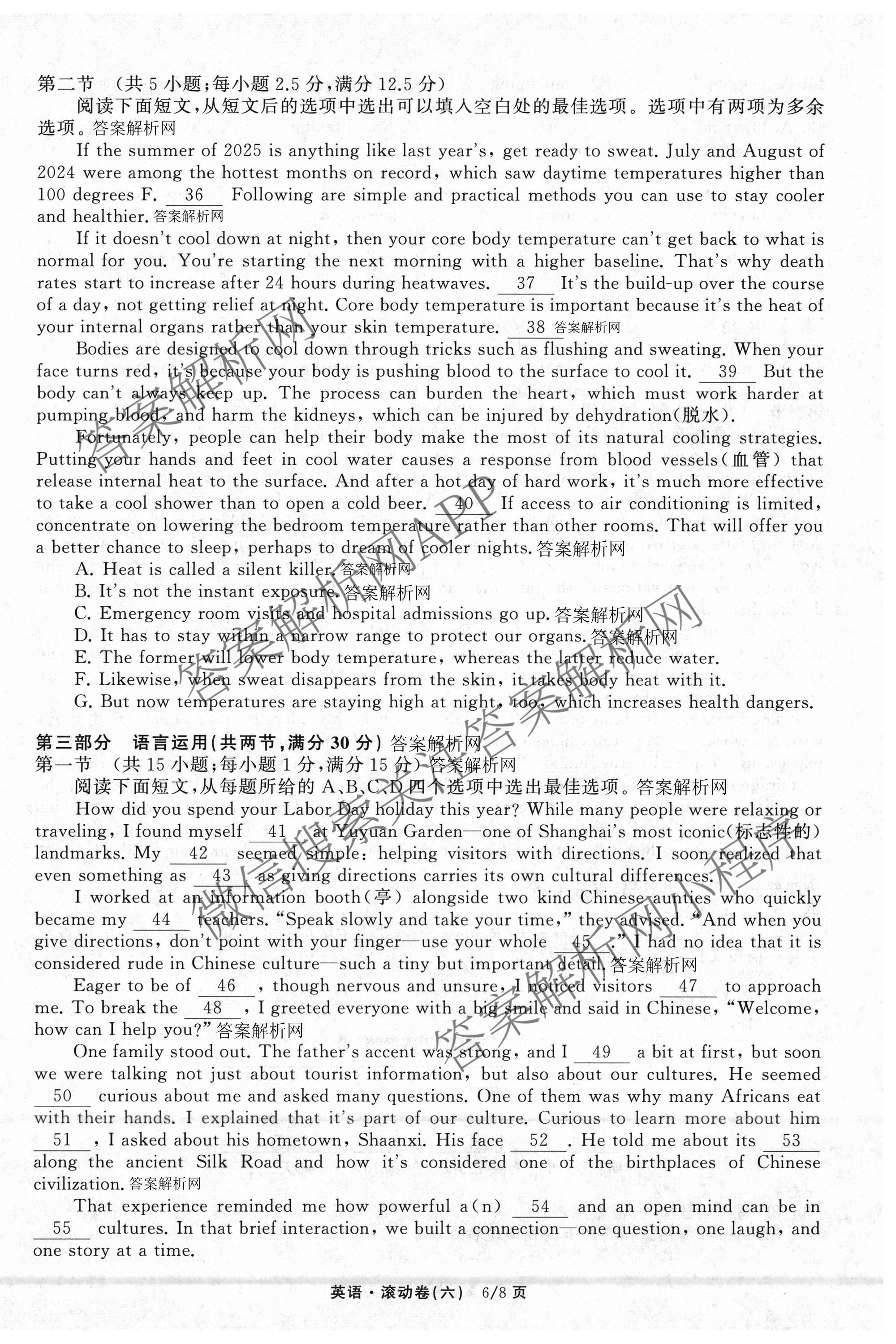 - 2025~2026(高三)[衡中同卷]·学年度复习滚动卷(六)6英语答案