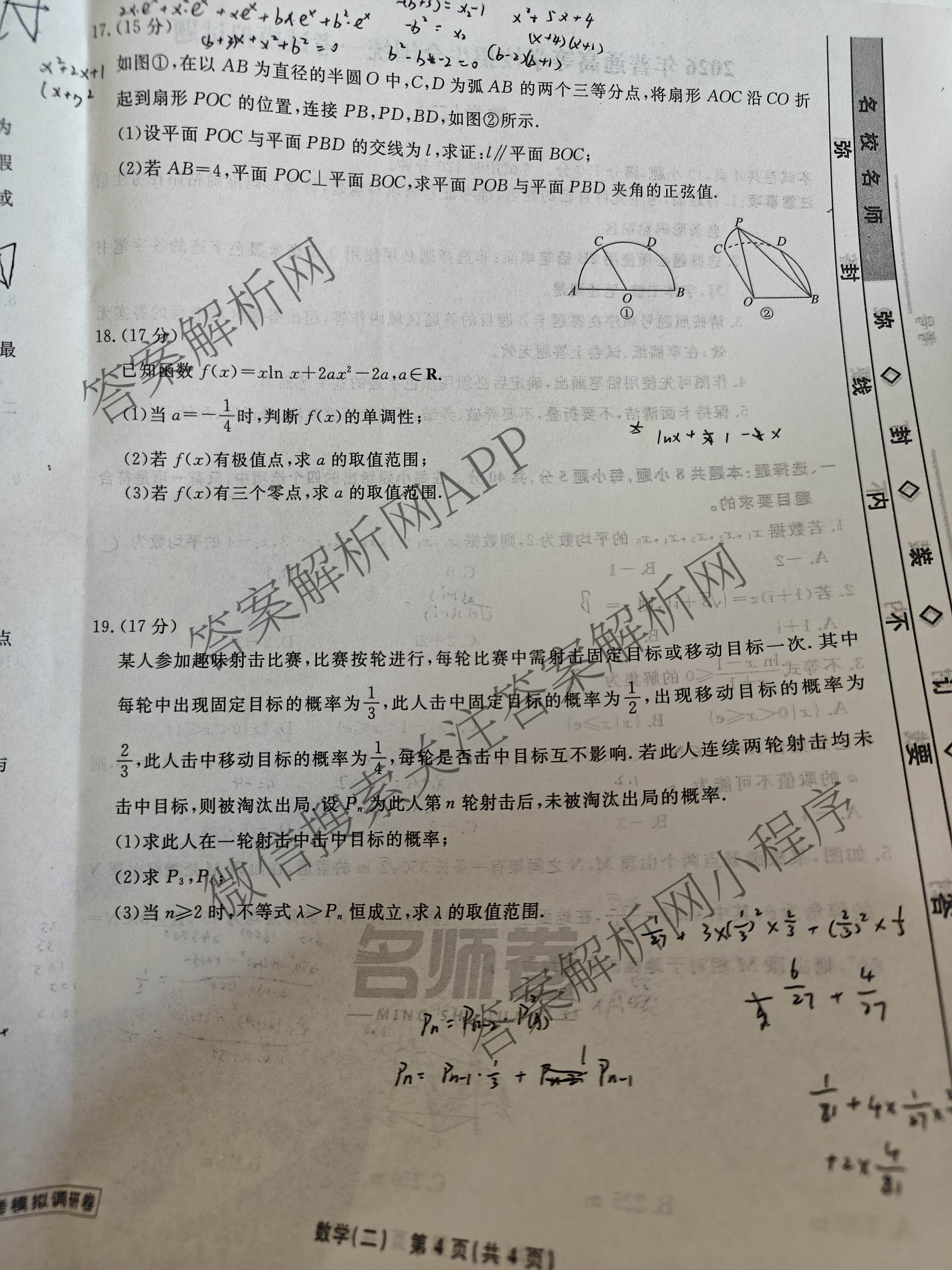 - [高三][衡水名师卷]高考模拟调研卷 2026年普通高等学校招生全国统一考试模拟试题(二)2数学(空心菱形)答案