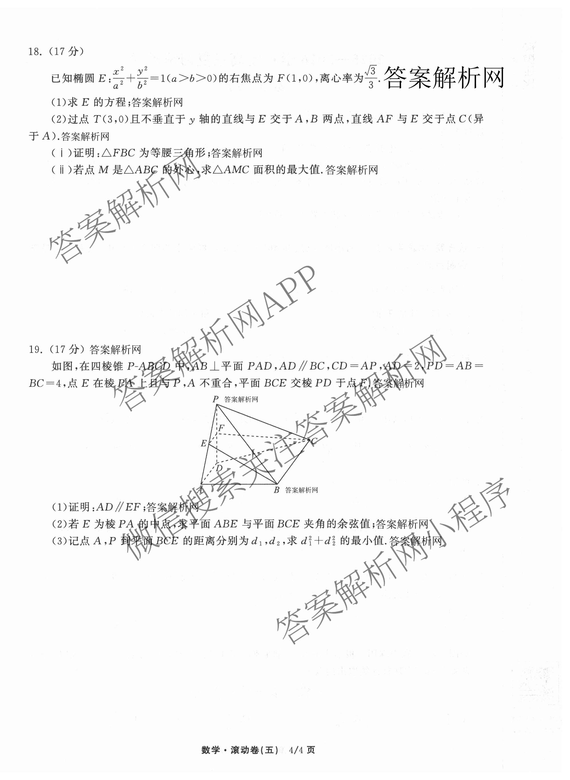 - [衡中同卷]·2025~2026学年度(高三)复习滚动卷(五)5数学(B)答案