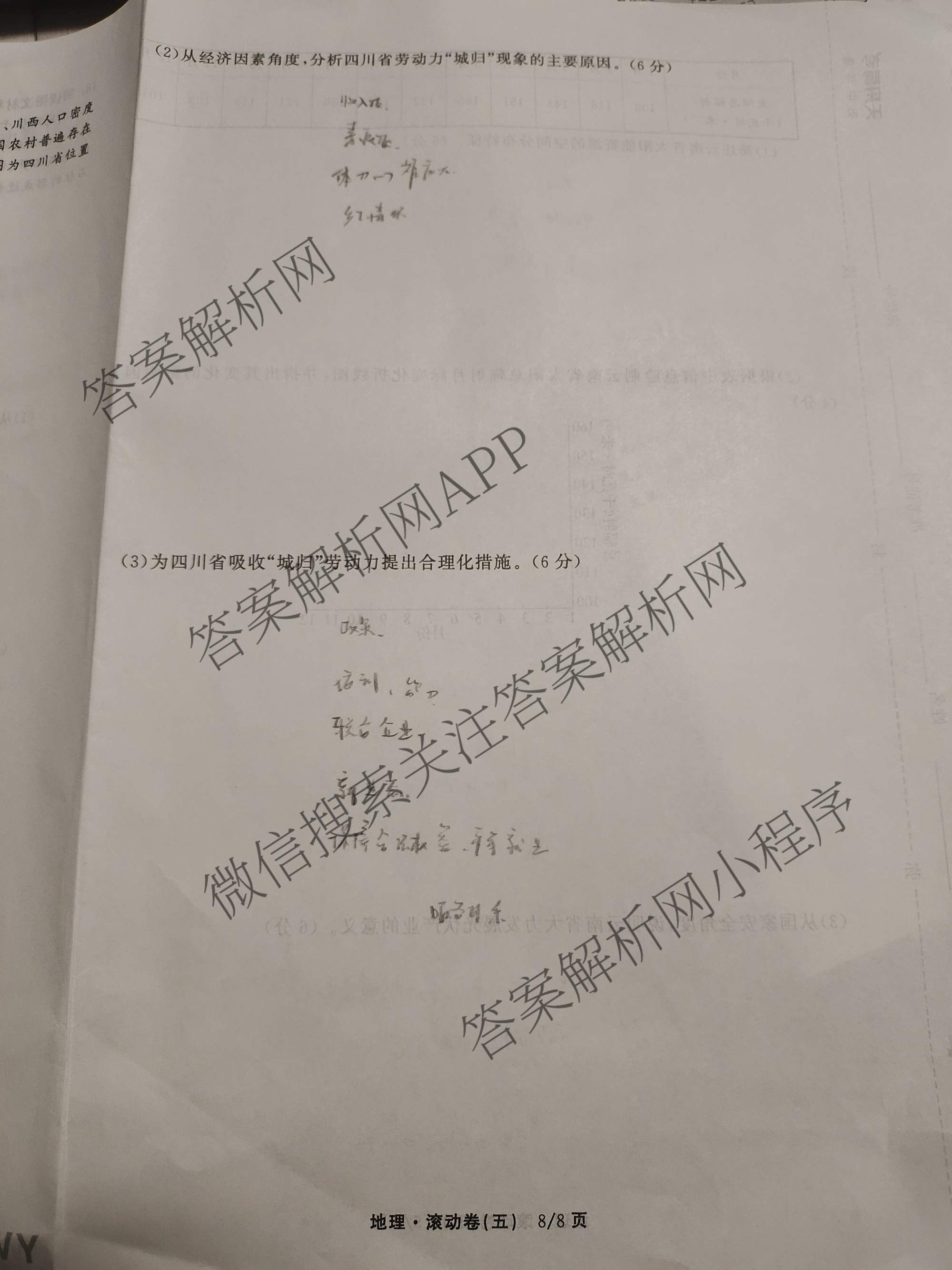 - [高三][衡中同卷]·2025-2026学年度复习滚动卷(五)5地理(WY)答案