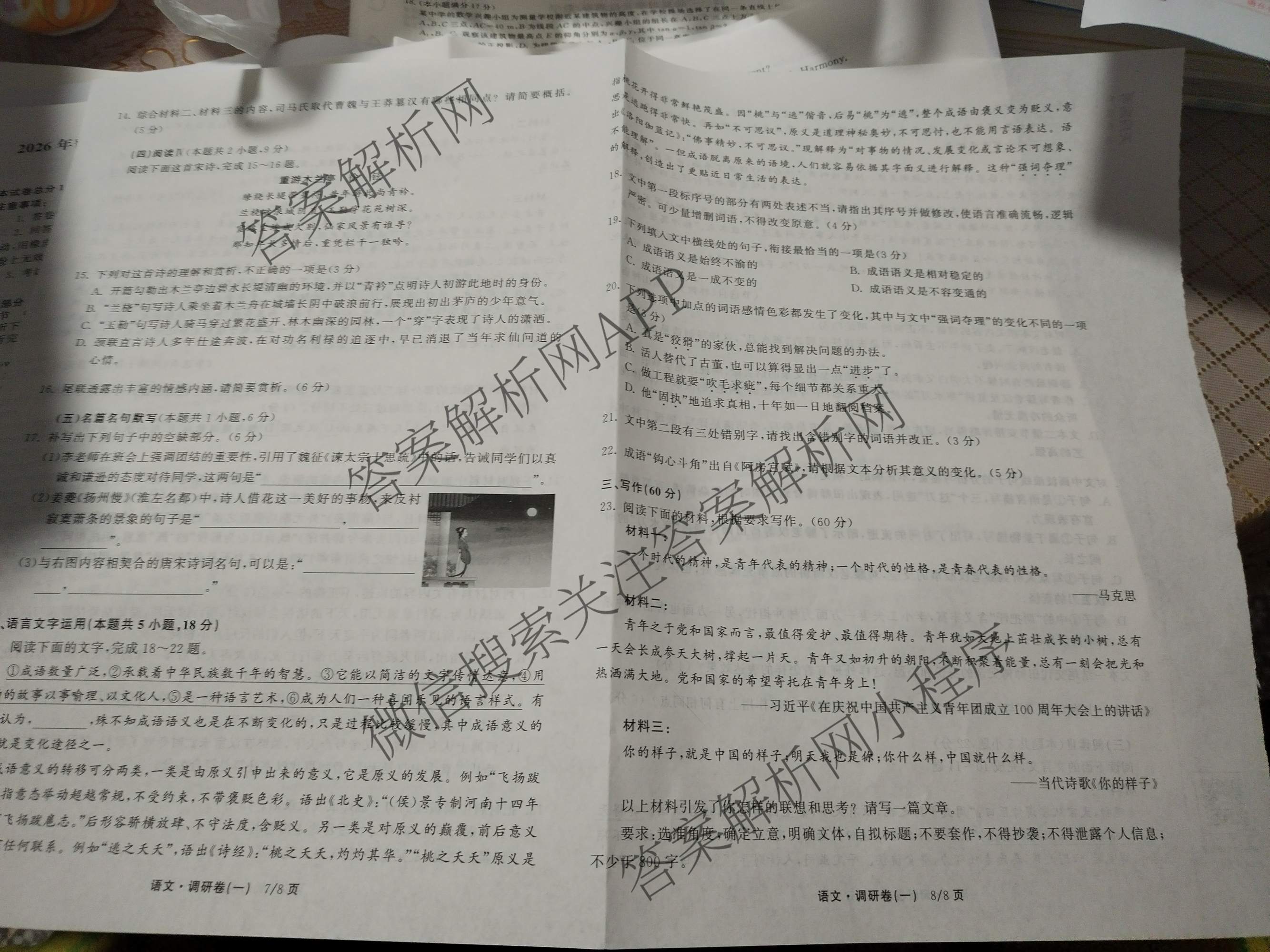 天舟高考衡中同卷·2026年普通高等学校招生全国统一考试模拟调研卷(一)1语文(无字母)试题,目前分科卷答案网已经汇总了天舟高考衡中同卷·2026年普通高等学校招生全国统一考试模拟调研卷(一)1语文(无字母)试题的各科答案和试卷,获取更多衡中同卷答案解析,请在关注本站。