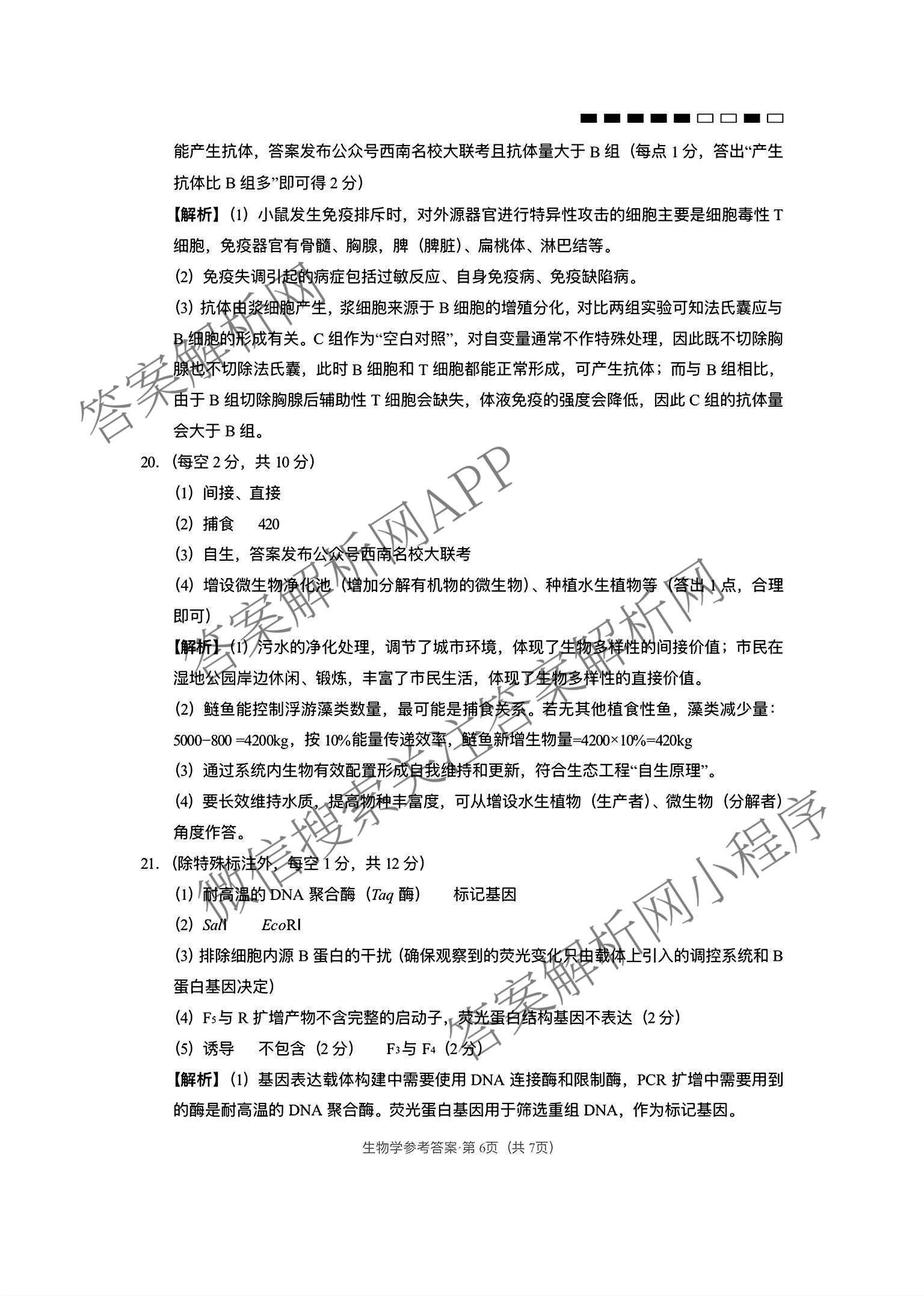 云南师大附中2026届高考适应性月考卷(六)(黑黑黑黑黑白白黑白)生物答案,目前分科卷答案网已经汇总了云南师大附中2026届高考适应性月考卷(六)(黑黑黑黑黑白白黑白)生物答案的各科答案和试卷,获取更多地方模拟答案解析,请在关注本站。