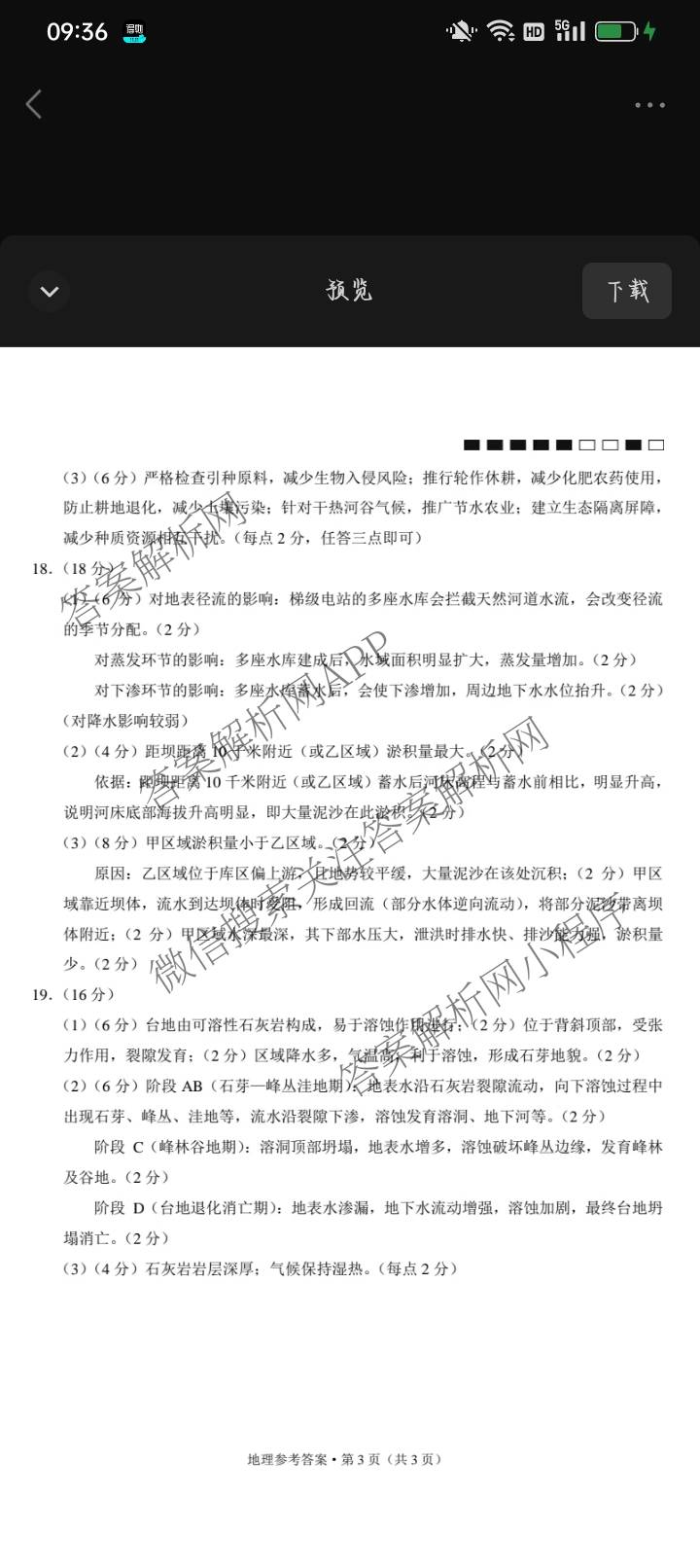 2026届(高三)云南师大附中高考适应性月考卷(六)(黑黑黑黑黑白白黑白)地理答案