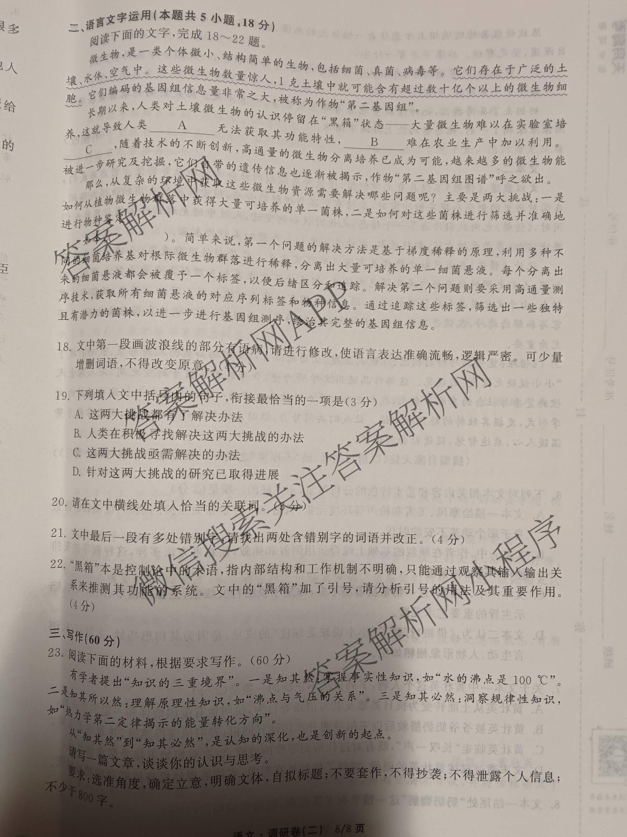 天舟高考衡中同卷·2026年普通高等学校招生全国统一考试模拟调研卷(二)2语文(B)试题,目前分科卷答案网已经汇总了天舟高考衡中同卷·2026年普通高等学校招生全国统一考试模拟调研卷(二)2语文(B)试题的各科答案和试卷,获取更多衡中同卷答案解析,请在关注本站。