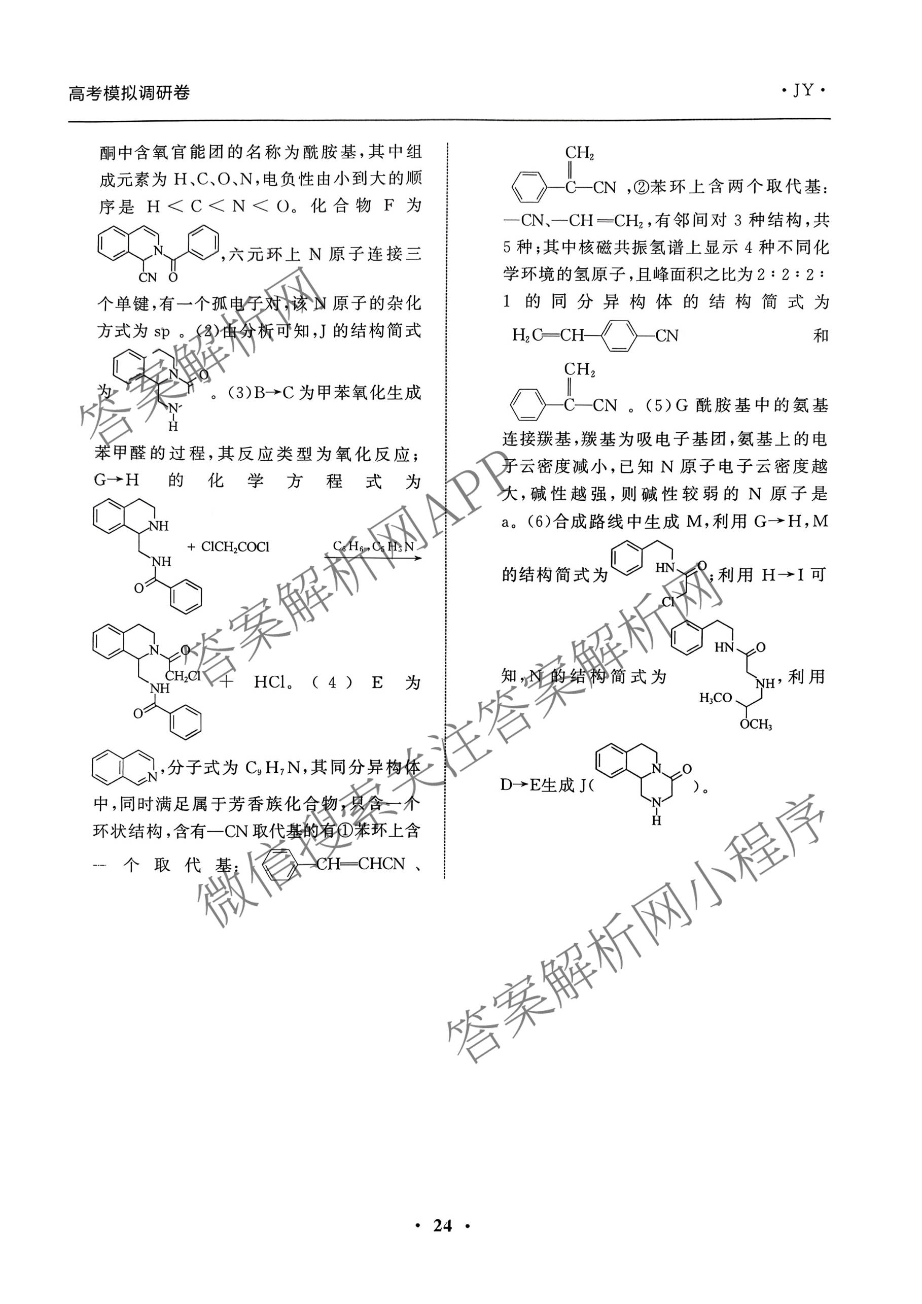 - [高三]天舟高考[衡中同卷]2026年普通高中学业水平选择性考试模拟调研卷(四)4化学(JY)答案