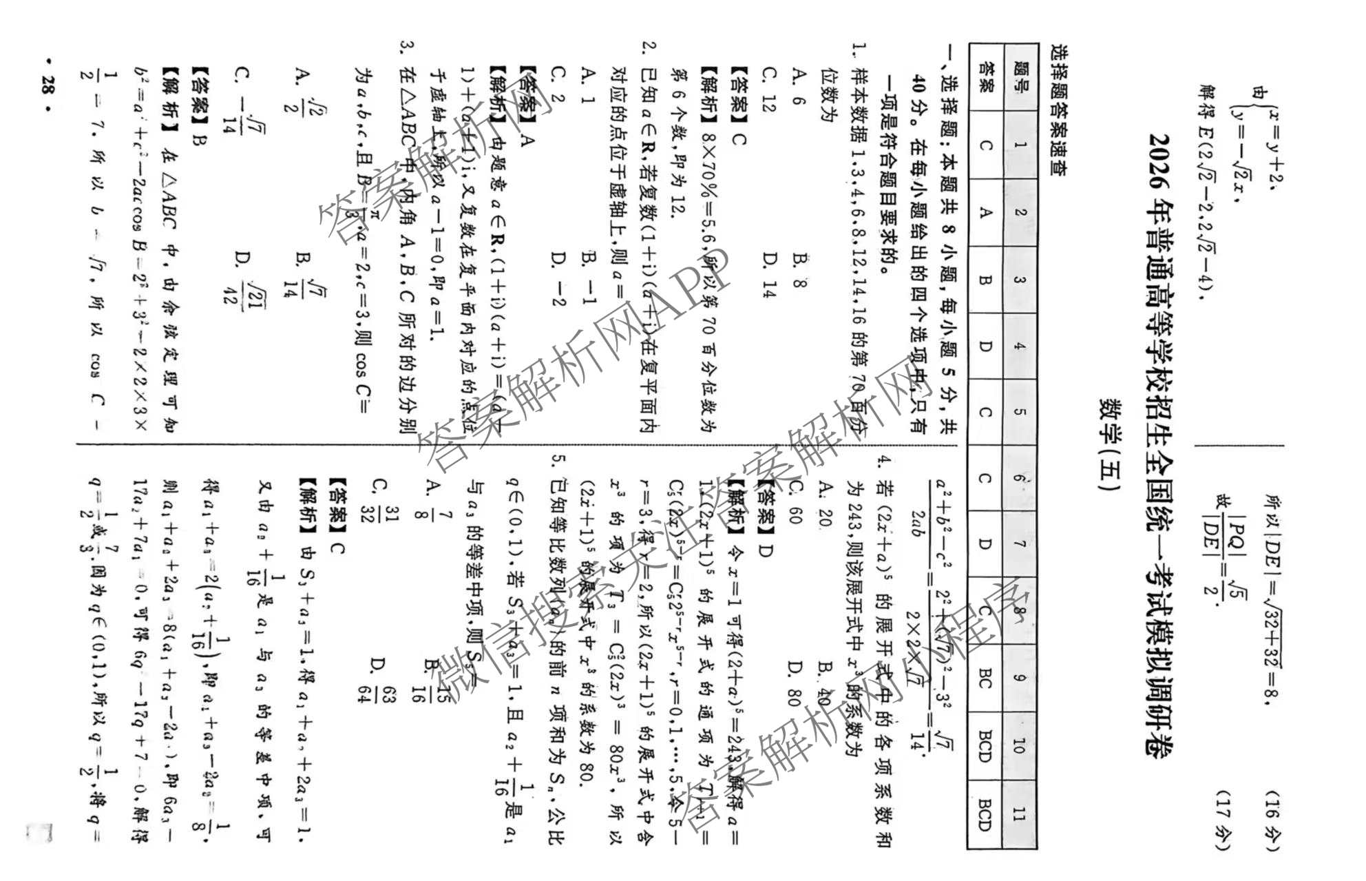 - [高三]天舟高考[衡中同卷]·2026年普通高等学校招生全国统一考试模拟调研卷(四)4数学(无字母)答案