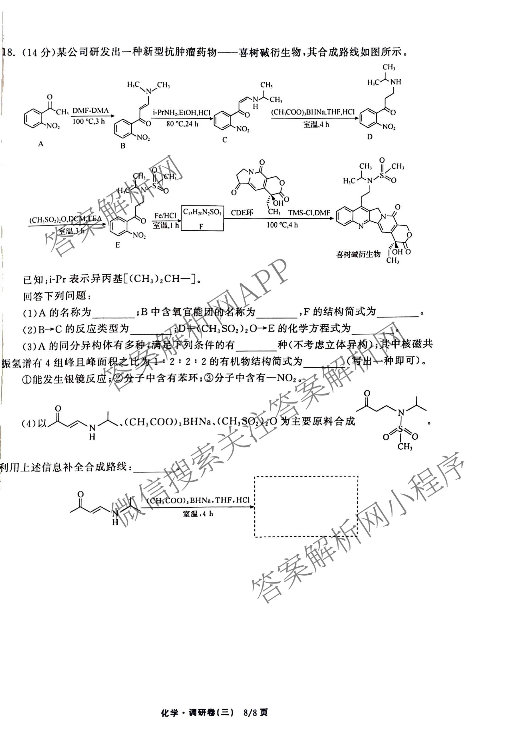 - (高三)天舟高考衡中同卷2026年普通高中学业水平选择性考试模拟调研卷(三)3化学(山东版)答案