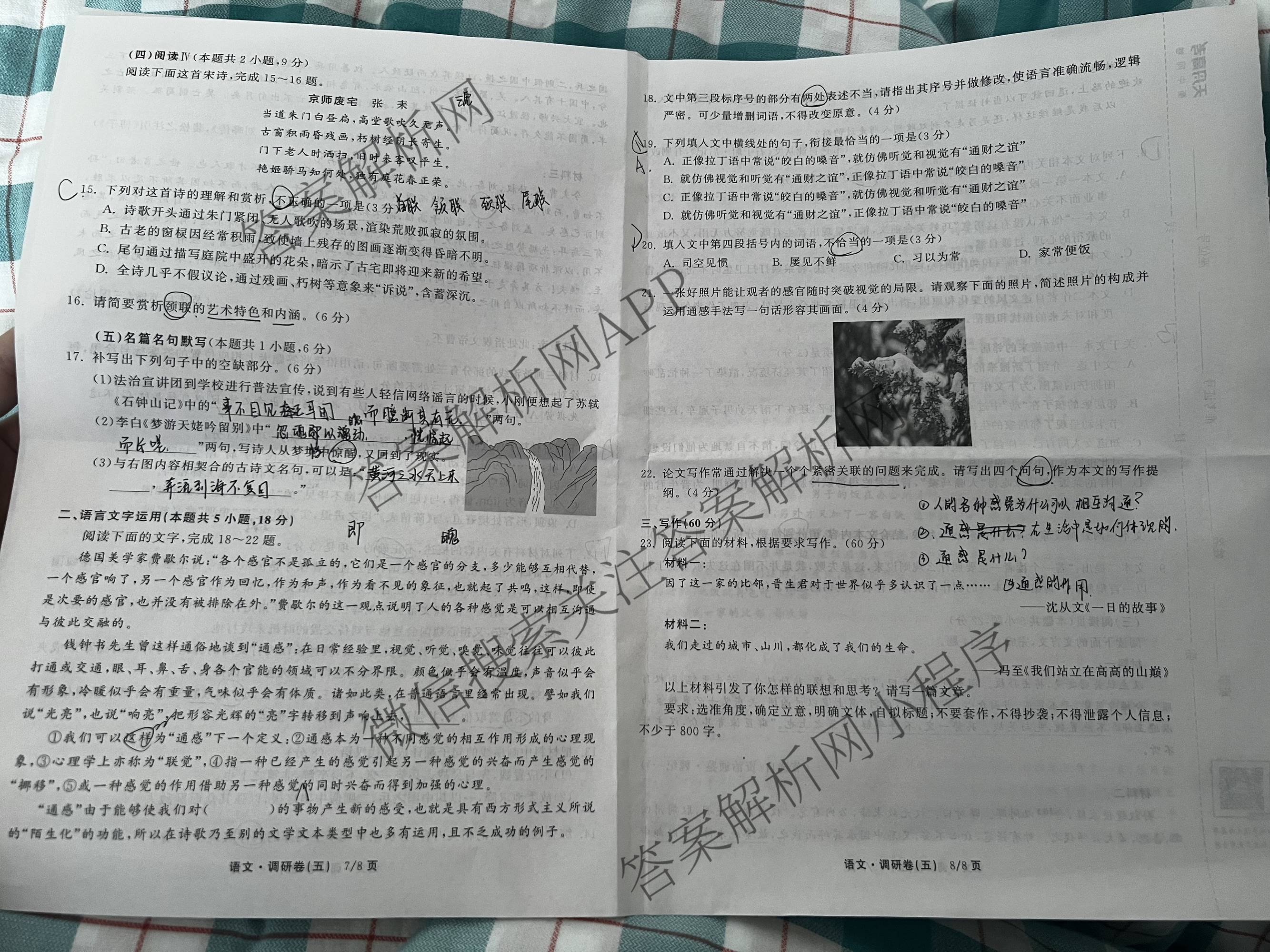 天舟高考(衡中同卷)·2026年普通高等学校招生全国统一考试模拟调研卷(五)5语文(无字母)试题