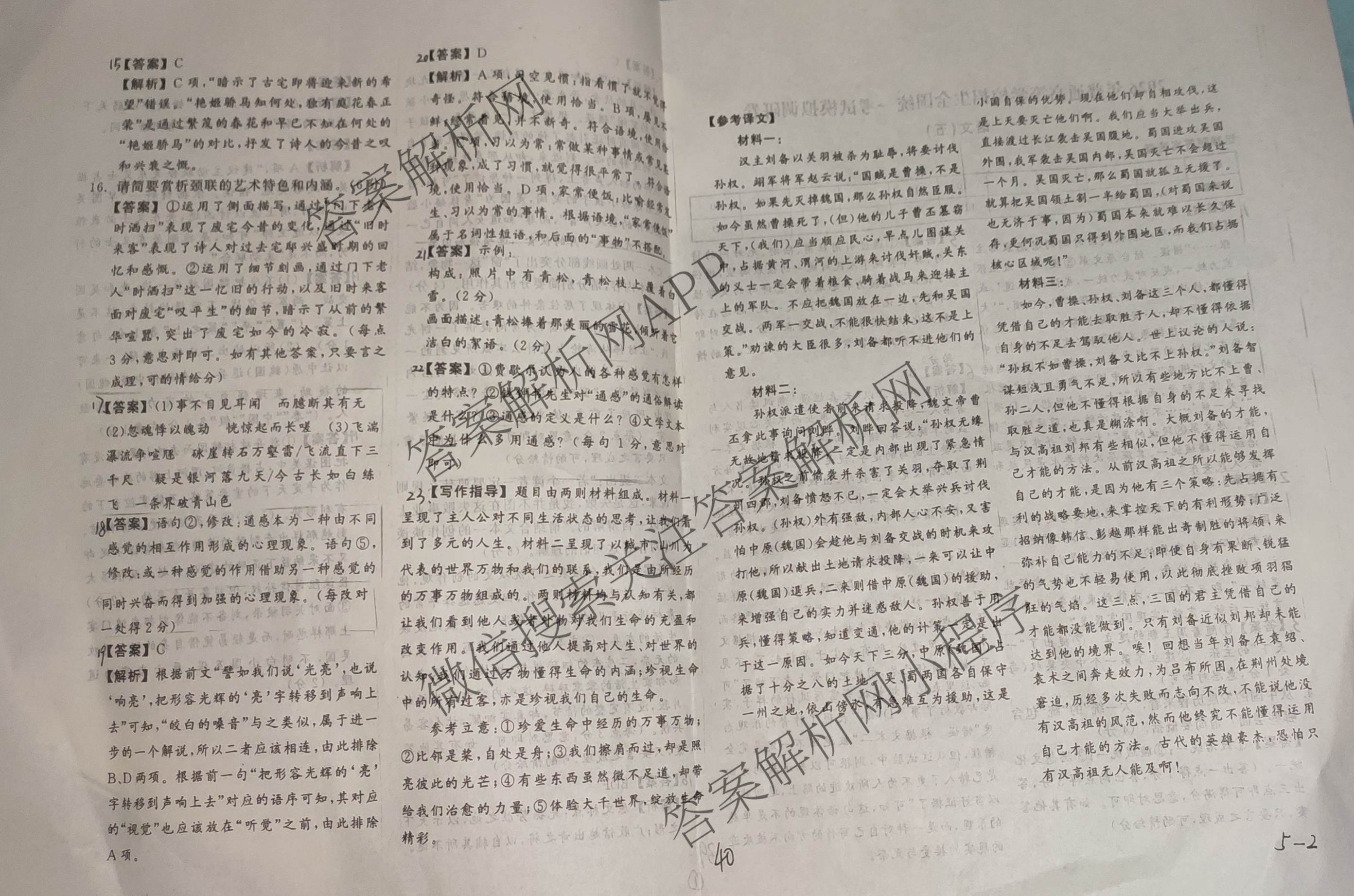 - [高三]天舟高考(衡中同卷)2026年普通高等学校招生全国统一考试模拟调研卷(五)5语文(无字母)答案