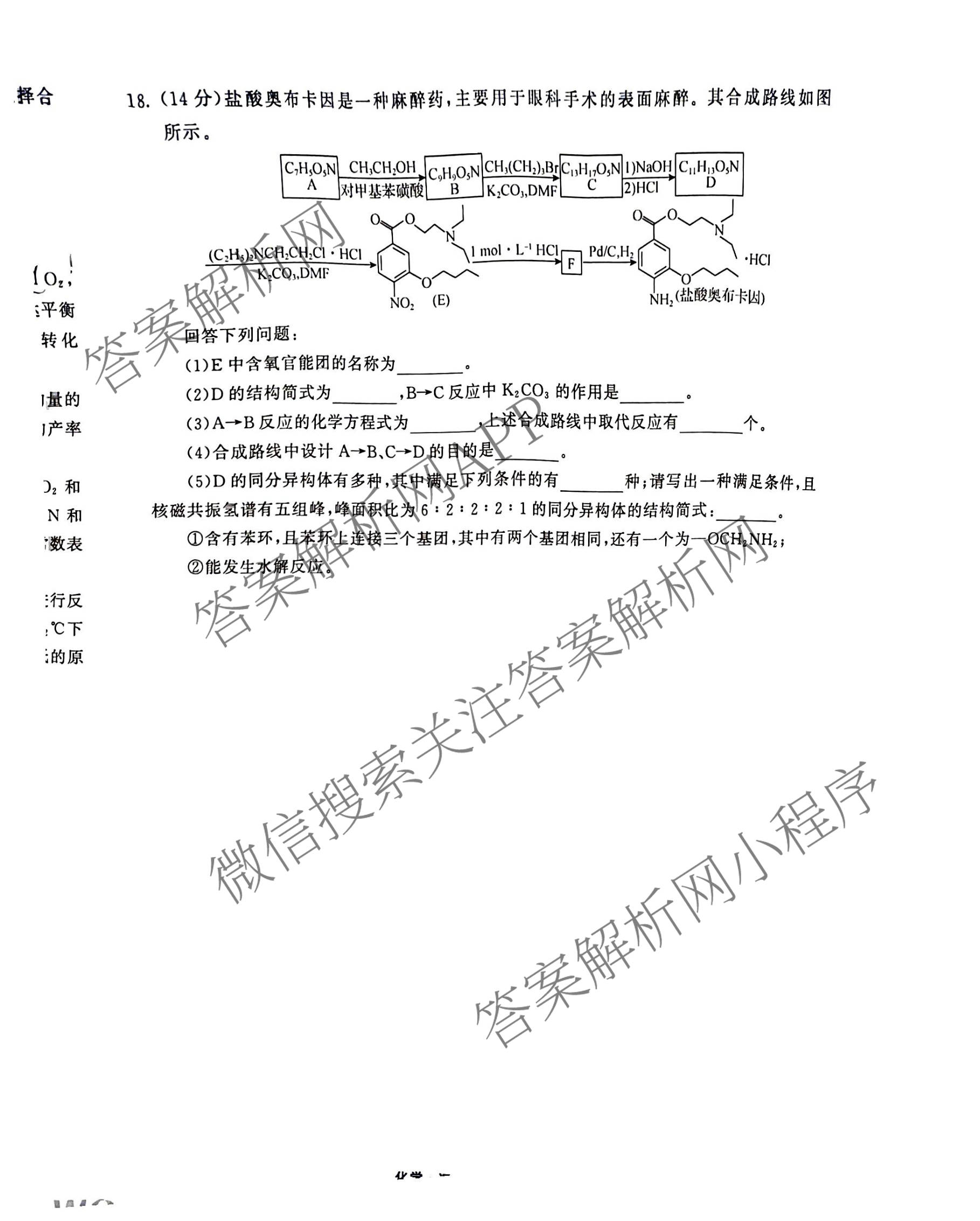 天舟高考衡中同卷·2026年普通高中学业水平选择性考试模拟调研卷(五)5化学(WG)试题,目前分科卷答案网已经汇总了天舟高考衡中同卷·2026年普通高中学业水平选择性考试模拟调研卷(五)5化学(WG)试题的各科答案和试卷,获取更多衡中同卷答案解析,请在关注本站。