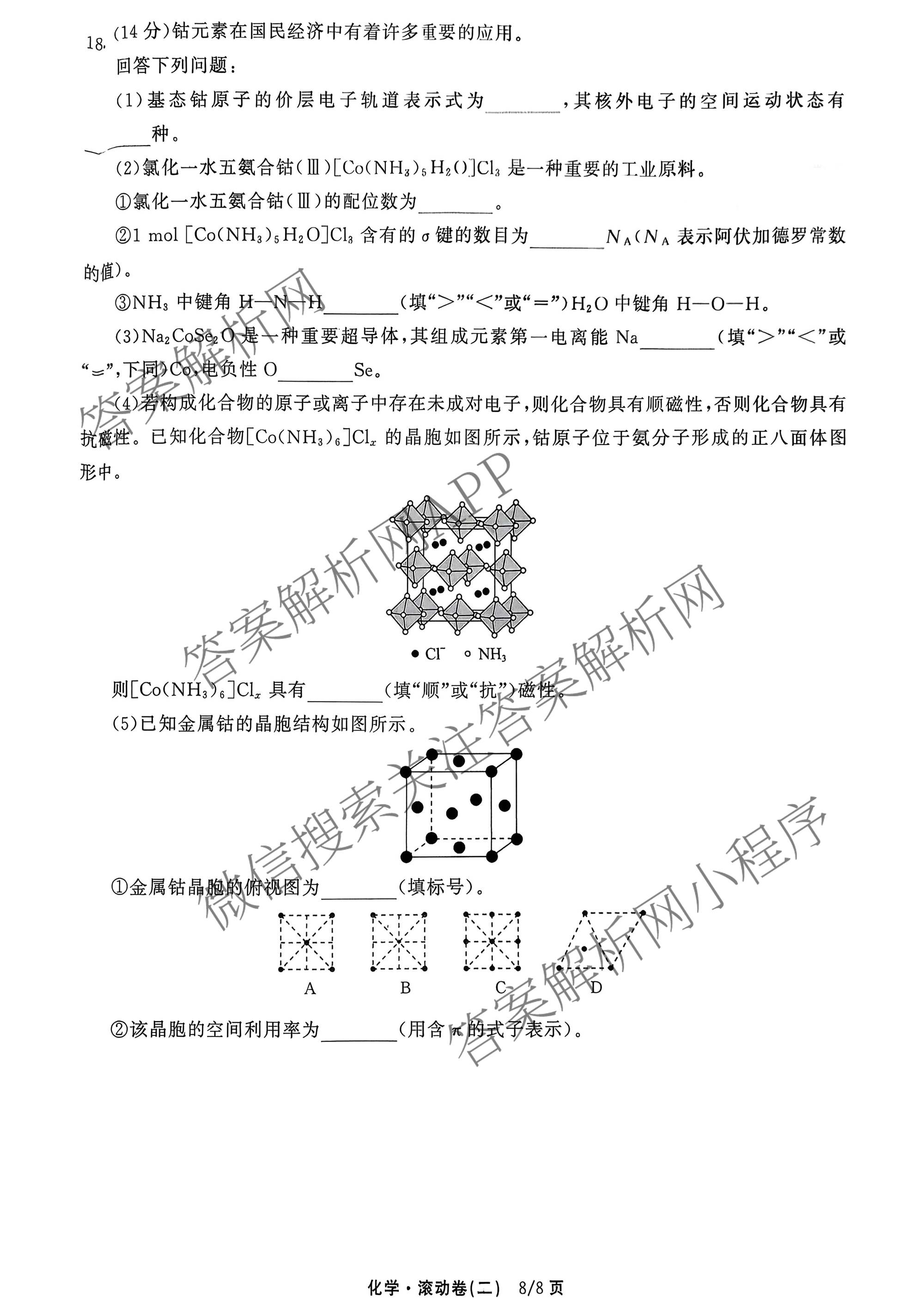 衡中同卷·2025-2026学年度高三复习滚动卷(二)2化学试题,目前分科卷答案网已经汇总了衡中同卷·2025-2026学年度高三复习滚动卷(二)2化学试题的各科答案和试卷,获取更多衡中同卷答案解析,请在关注本站。
