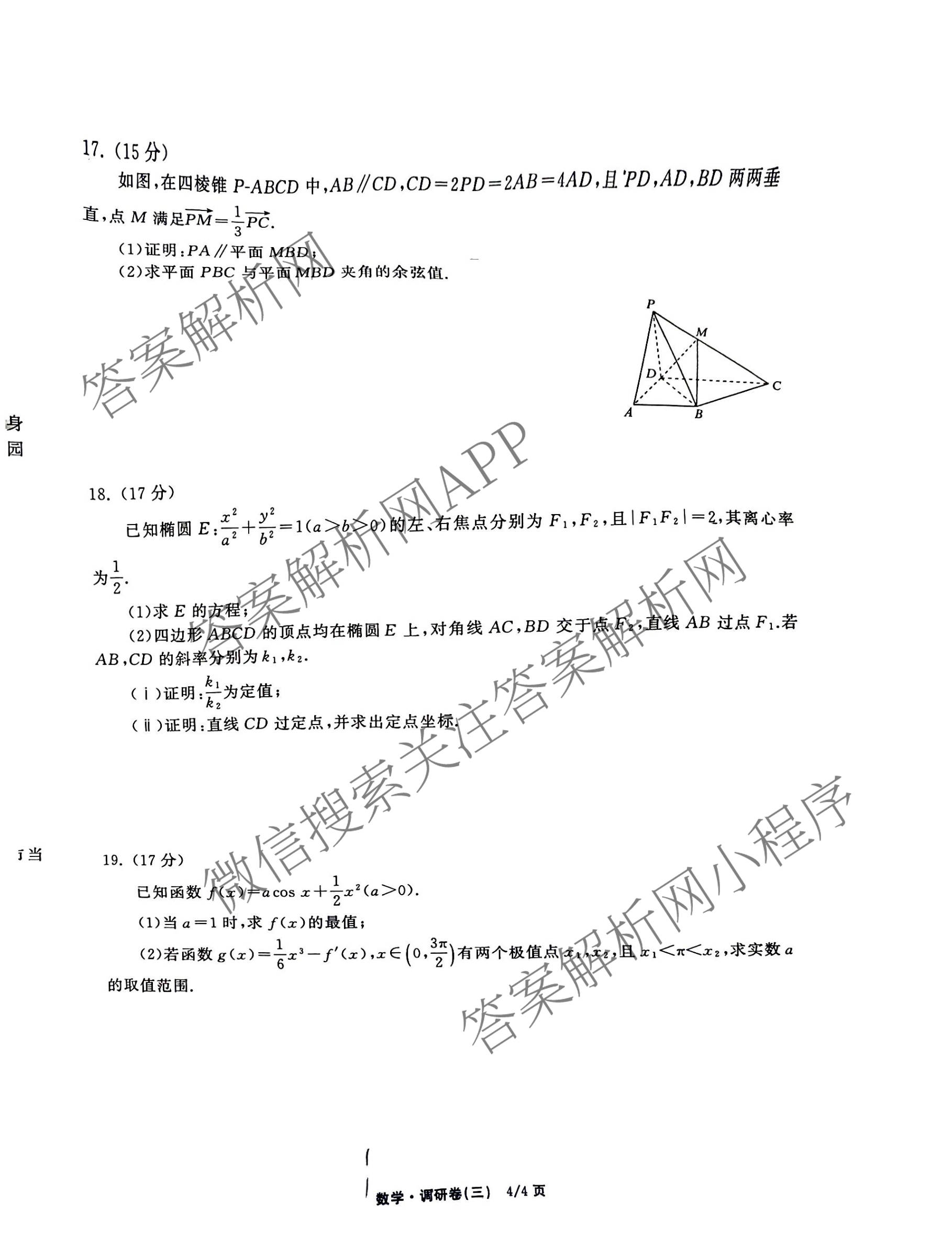 天舟高考(衡中同卷)2026年普通高等学校招生全国统一考试模拟调研卷(三)3数学(无字母)试题