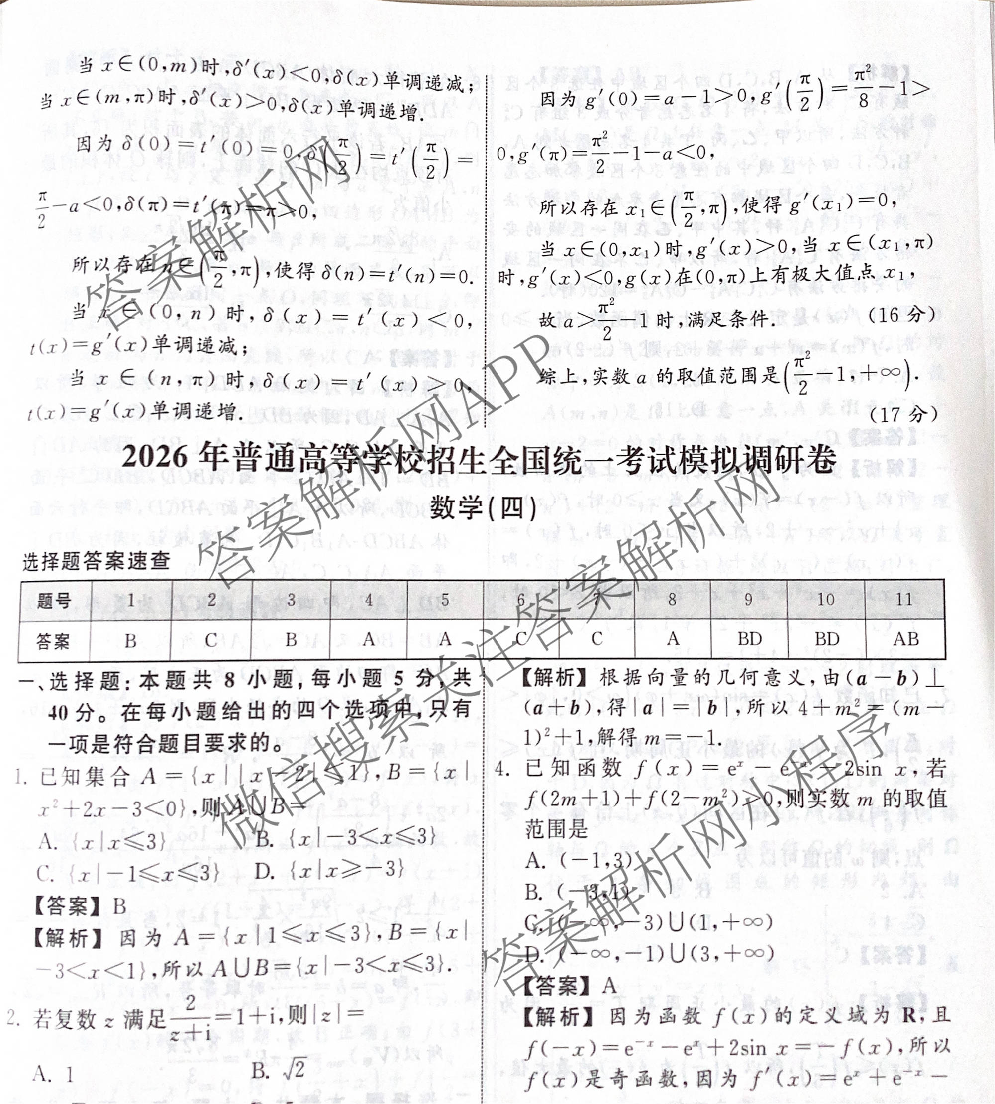 天舟高考衡中同卷·2026年普通高等学校招生全国统一考试模拟调研卷(三)3数学(无字母)答案,目前分科卷答案网已经汇总了天舟高考衡中同卷·2026年普通高等学校招生全国统一考试模拟调研卷(三)3数学(无字母)答案的各科答案和试卷,获取更多衡中同卷答案解析,请在关注本站。