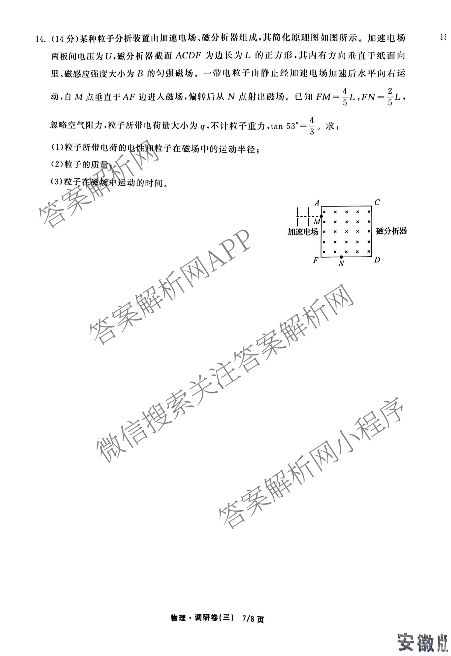 - [高三]天舟高考[衡中同卷]2026年普通高中学业水平选择性考试模拟调研卷(三)3物理(安徽版)答案