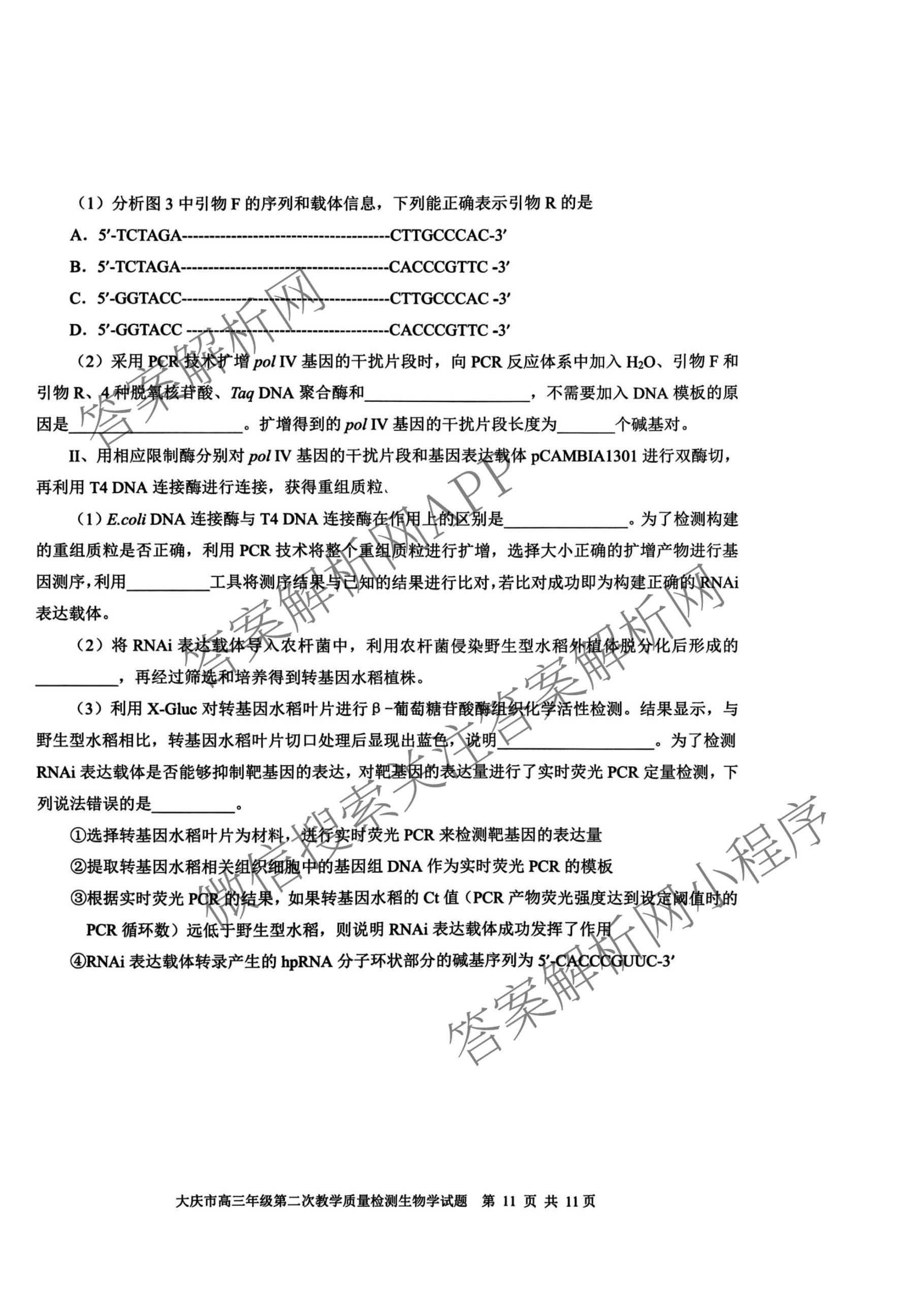 - [高三][大庆二模]黑龙江大庆市2026届年级第二次教学质量检测生物试题