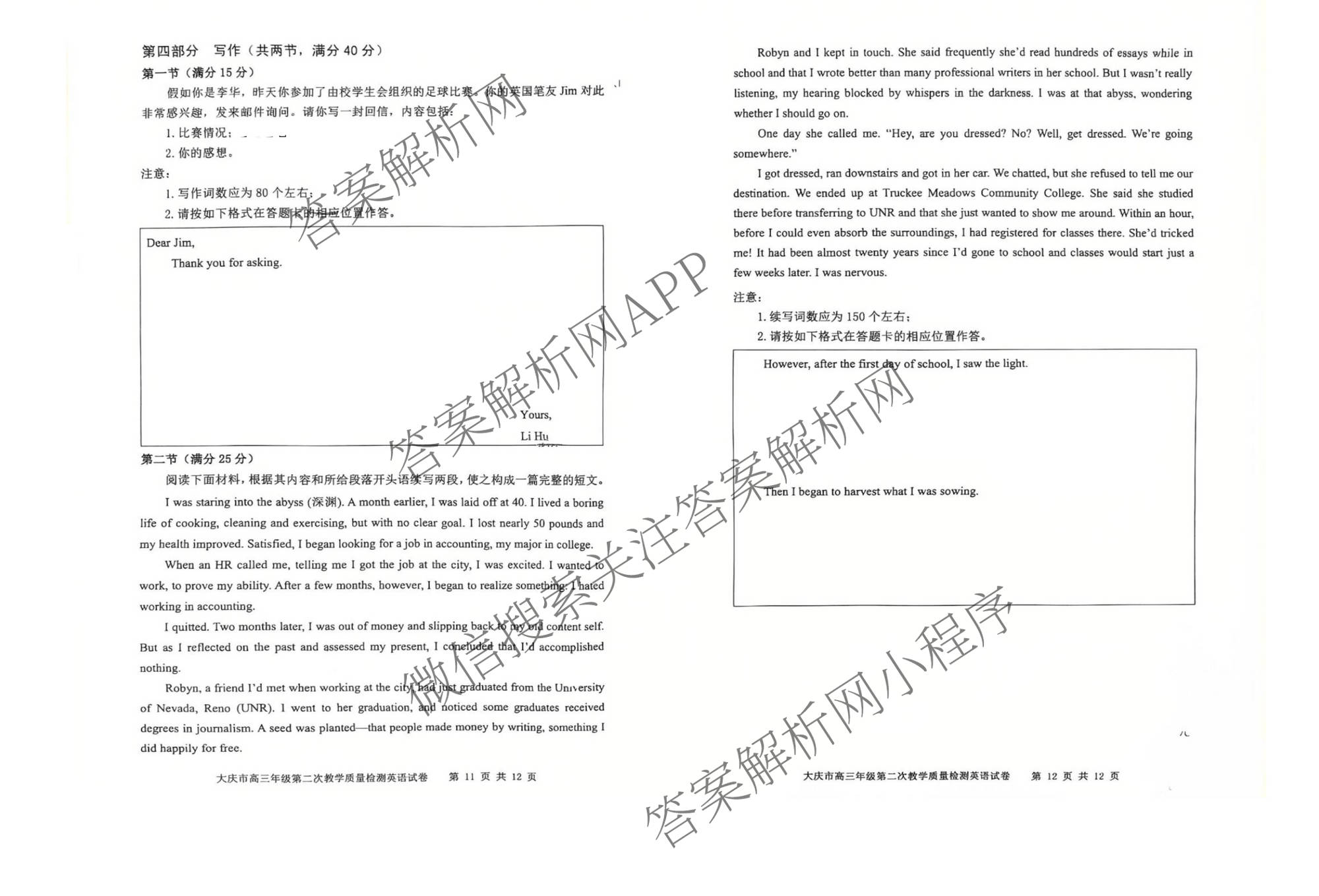 2026届高三[大庆二模]黑龙江大庆市年级第二次教学质量检测英语试题