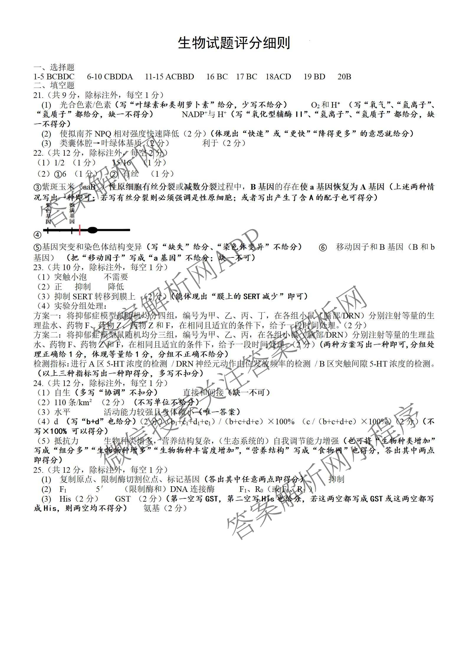 山东省实验中学2026届高三1月诊断性考试(2026.1)生物答案,目前分科卷答案网已经汇总了山东省实验中学2026届高三1月诊断性考试(2026.1)生物答案的各科答案和试卷,获取更多地方模拟答案解析,请在关注本站。