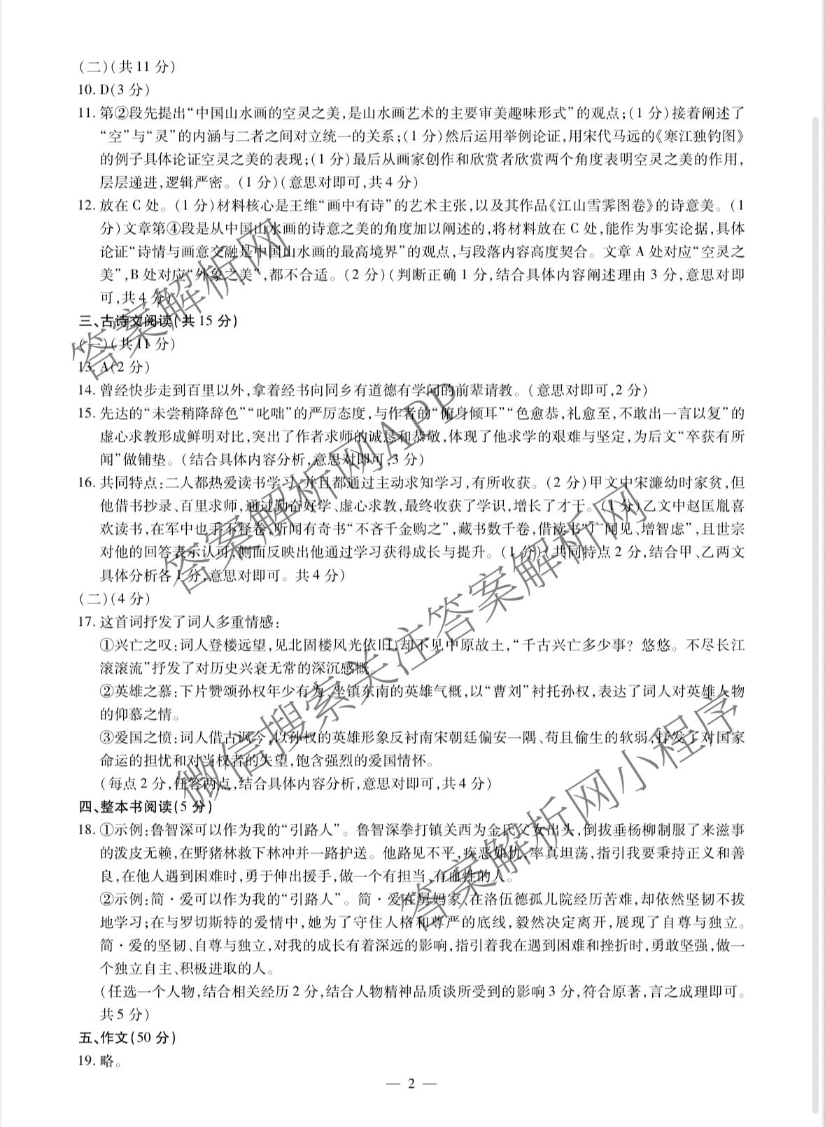 九年级河南省周口市2025~2026学年上学期学情调研作业(五)语文(人教版)答案
