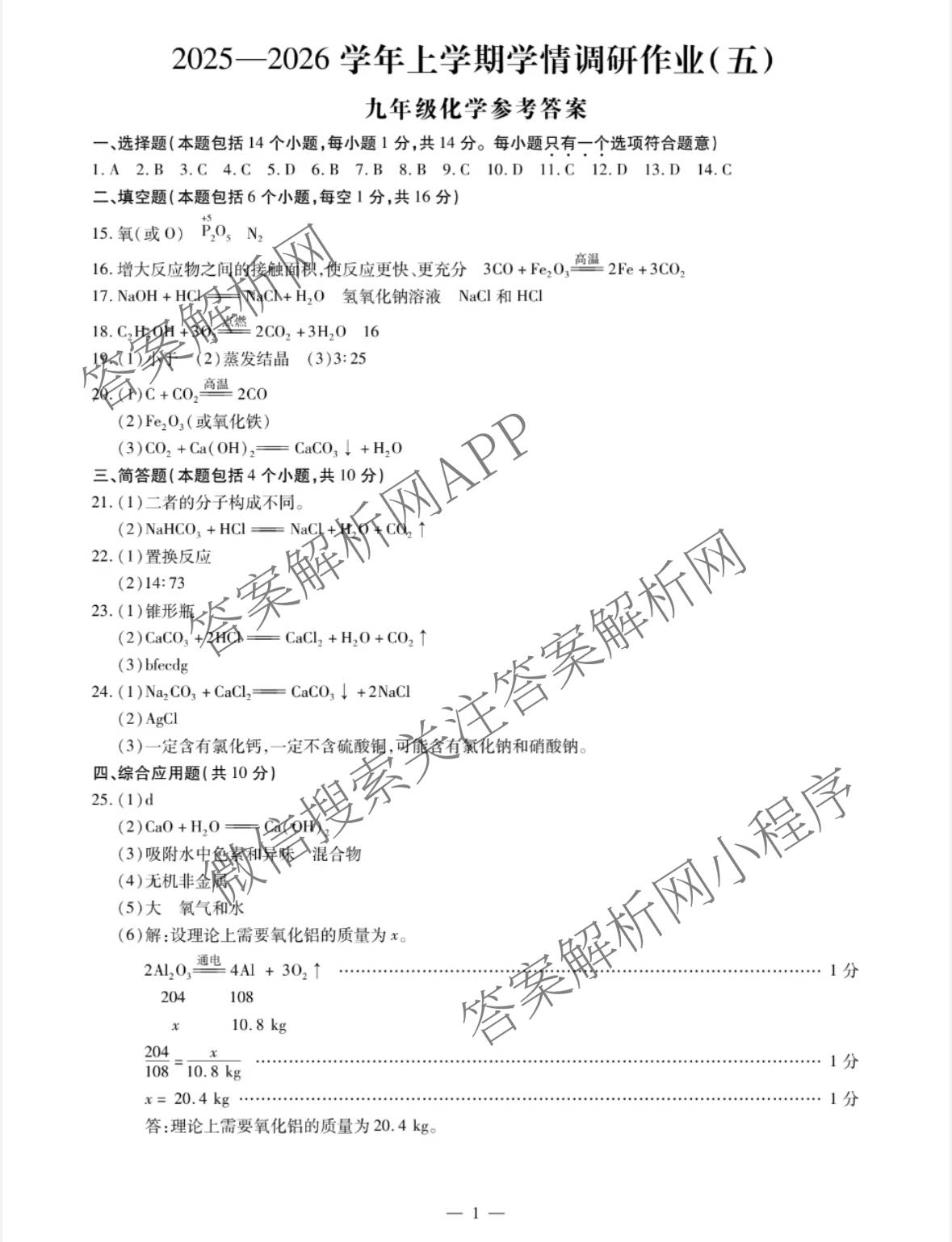 - 2025~2026[九年级]河南省周口市学年上学期学情调研作业(五)化学答案