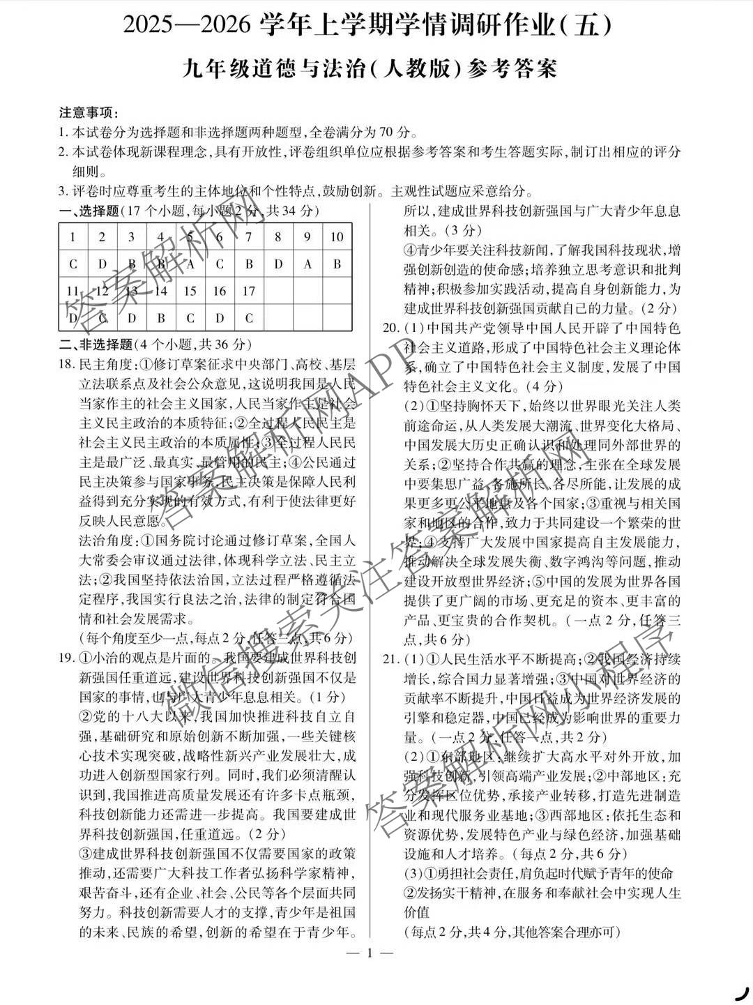 河南省周口市2025-2026学年上学期学情调研作业(五)九年级道德与法治(人教版)答案,目前分科卷答案网已经汇总了河南省周口市2025-2026学年上学期学情调研作业(五)九年级道德与法治(人教版)答案的各科答案和试卷,获取更多地方模拟答案解析,请在关注本站。