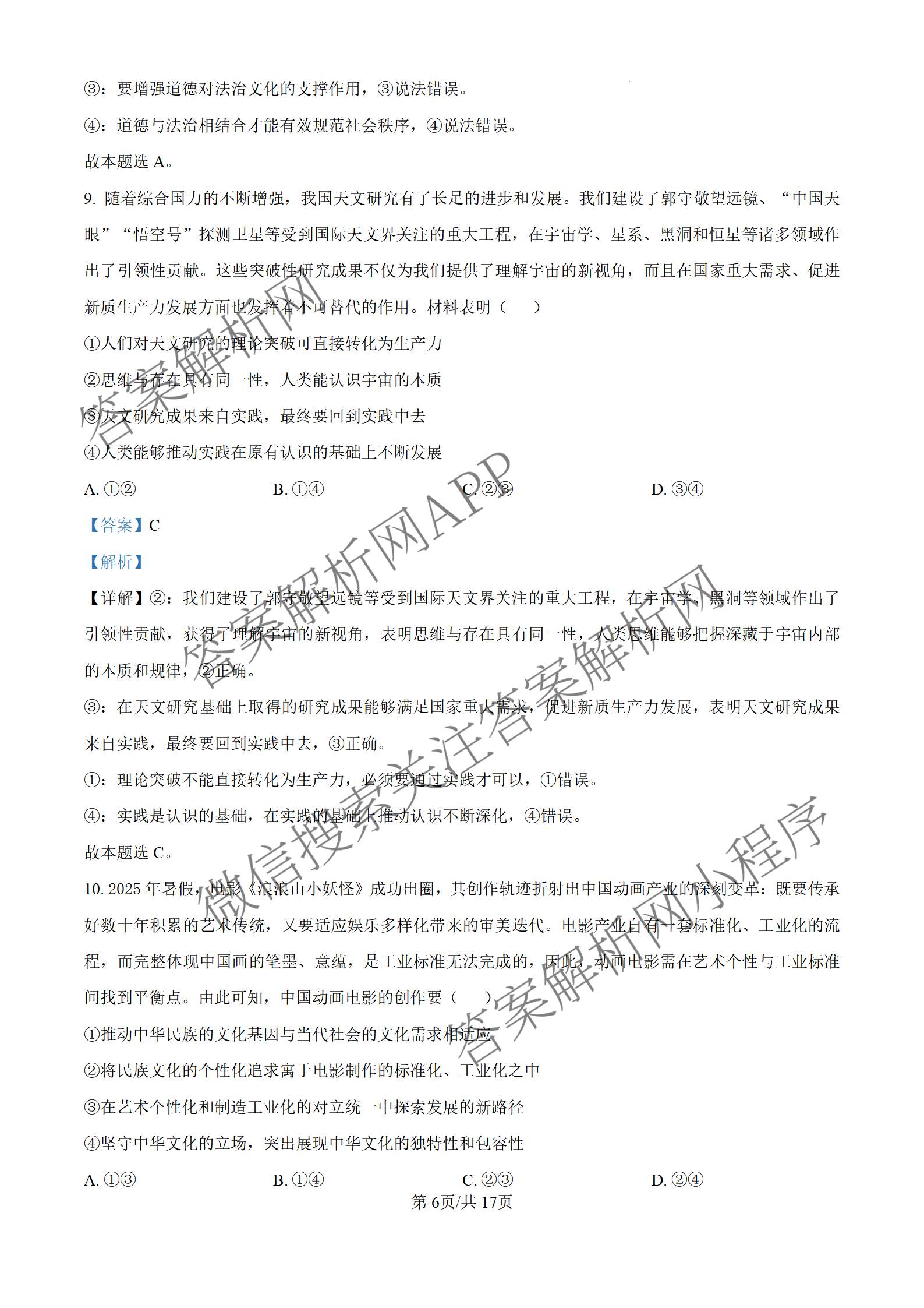 2026届高考备考信息巩固训练(一)(高三)政治答案
