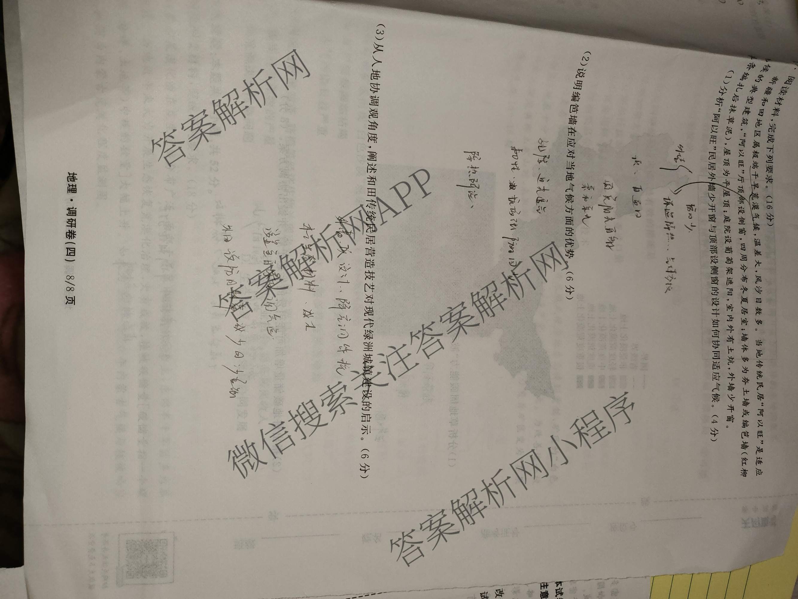 - [高三]天舟高考[衡中同卷]2026年普通高中学业水平选择性考试模拟调研卷(四)4地理答案