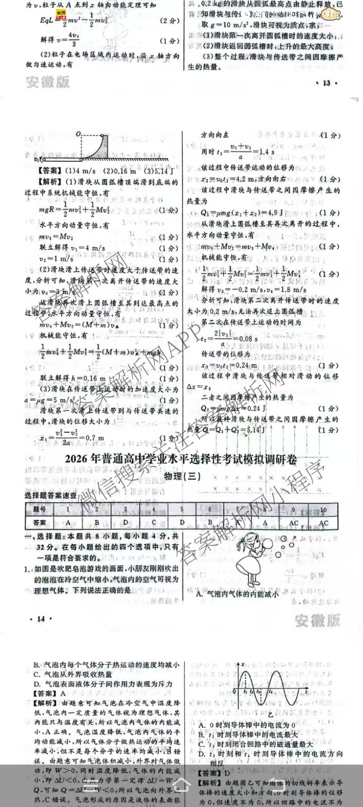 - [高三]天舟高考[衡中同卷]2026年普通高中学业水平选择性考试模拟调研卷(二)2物理(安徽版)答案