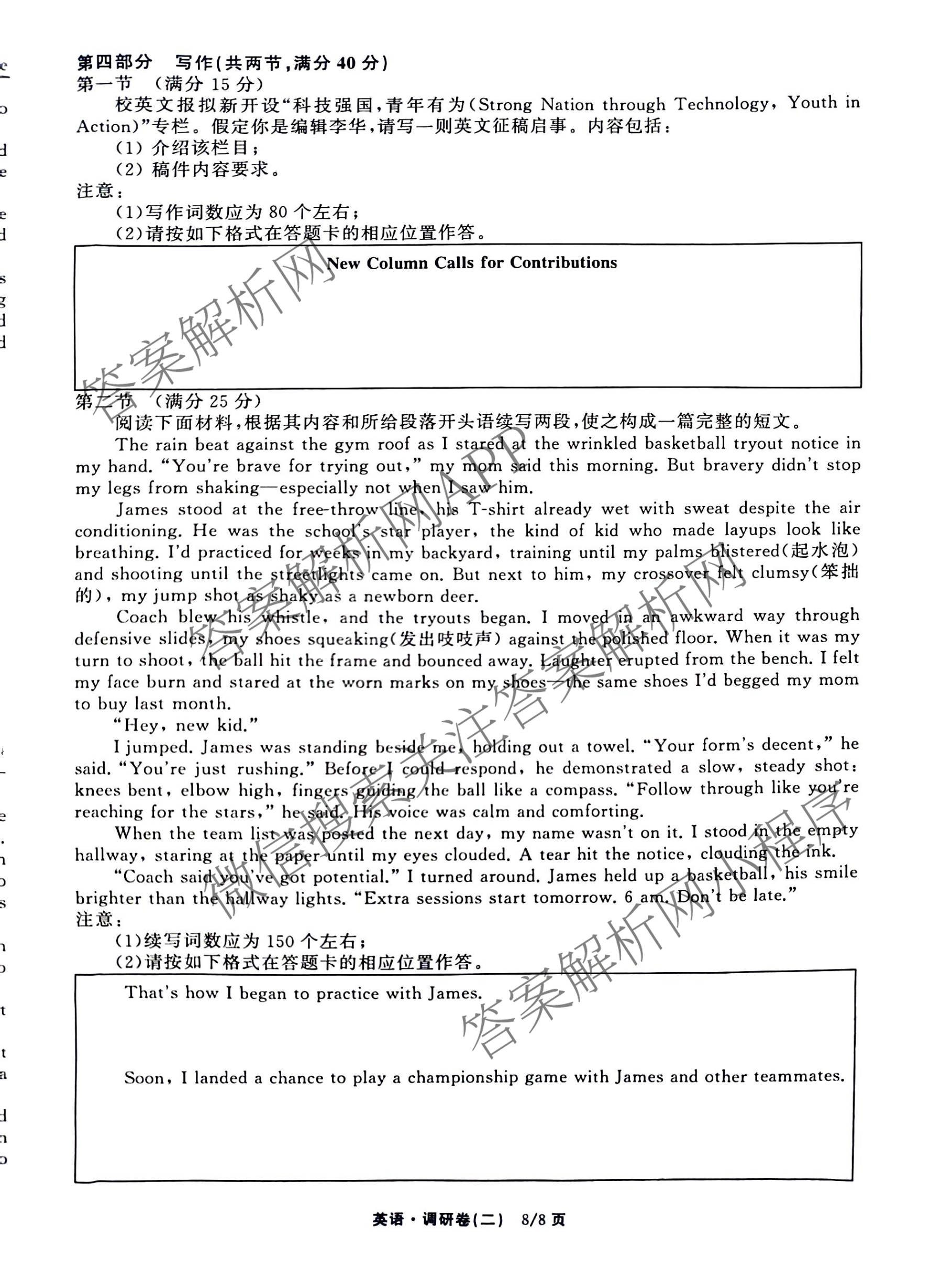 - [高三]天舟高考(衡中同卷)2026年普通高等学校招生全国统一考试模拟调研卷(二)2英语(B)试题