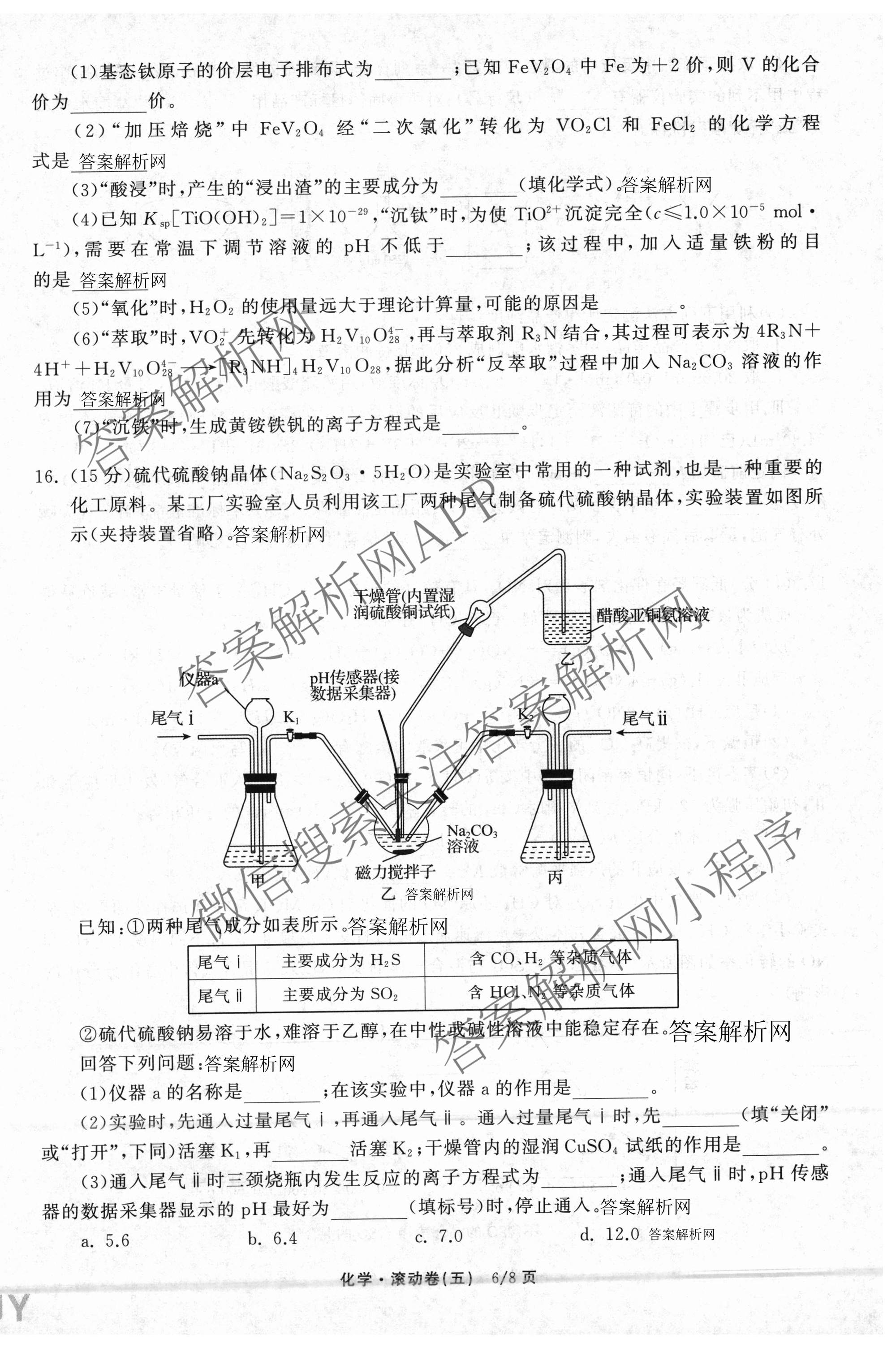 - 2025-2026[高三]衡中同卷学年度复习滚动卷(五)5化学(LE)试题