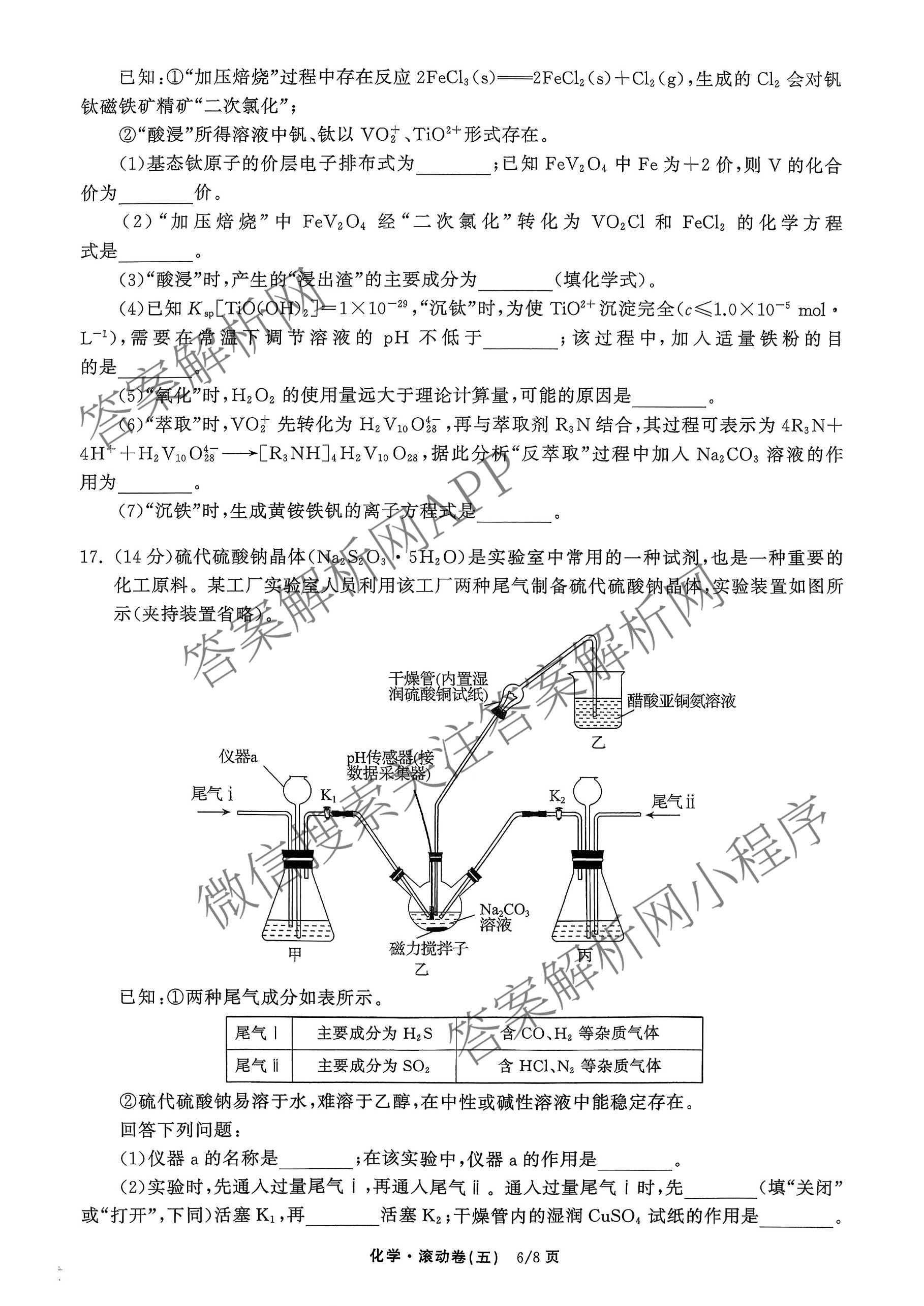 - 2025-2026[高三]衡中同卷学年度复习滚动卷(五)5化学(LE)试题